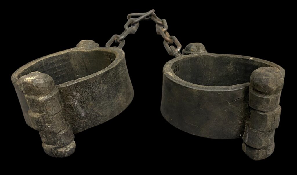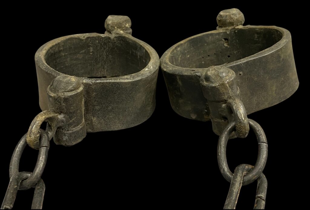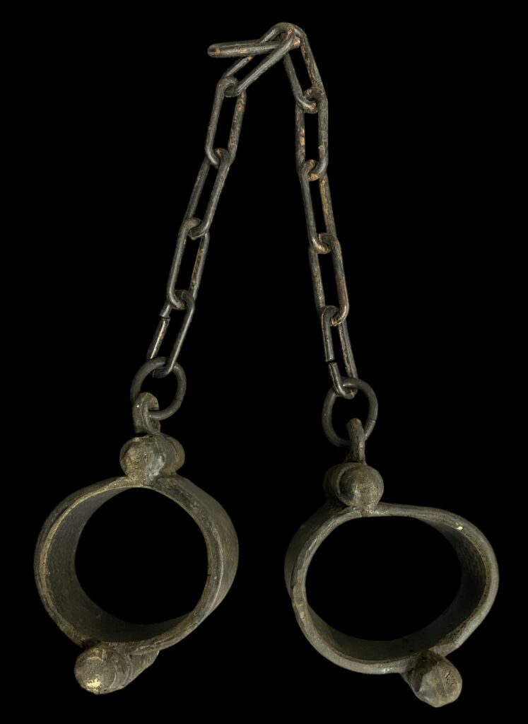 Handcuffs with chain - plastic/d= 9.5 cm: In good condition with patina. Chain length 50 cm.