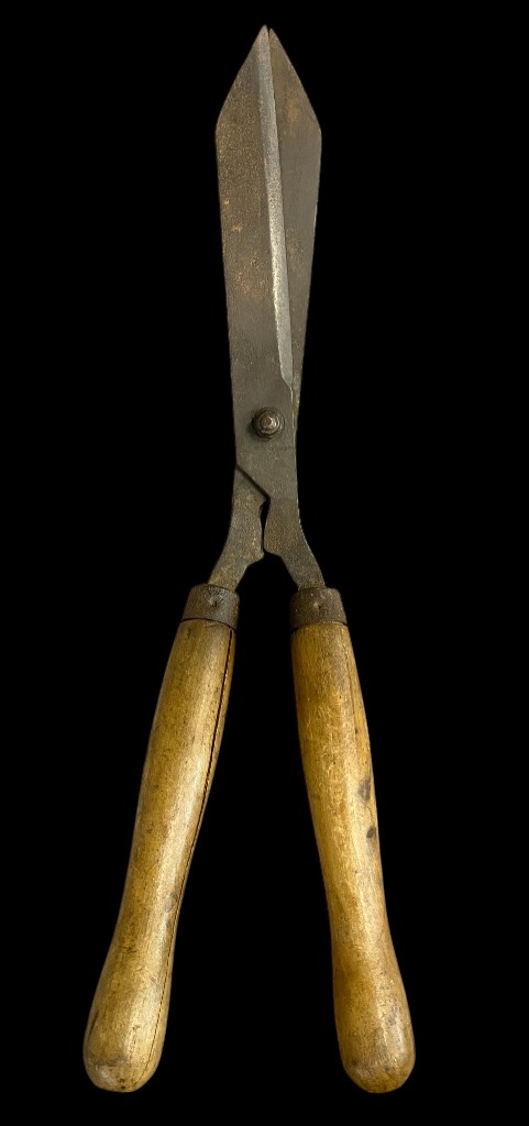 Early 20th century. Rusty steel, wooden handle. Patinated, good condition.