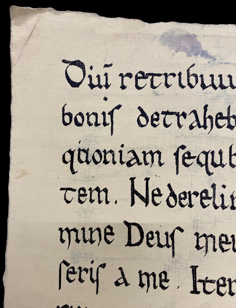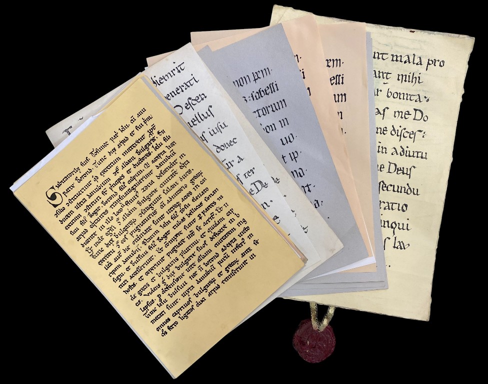 On hard paper with medieval font.