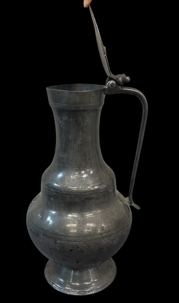Miniature pouring spout with lid and amphora-shaped top decoration