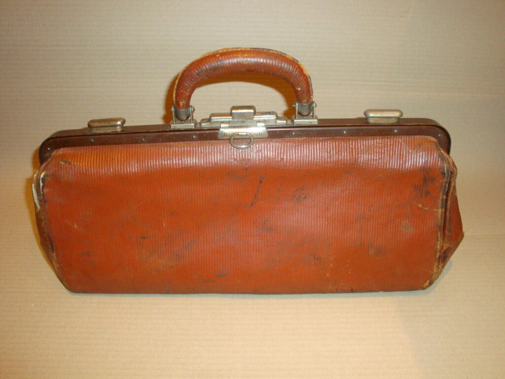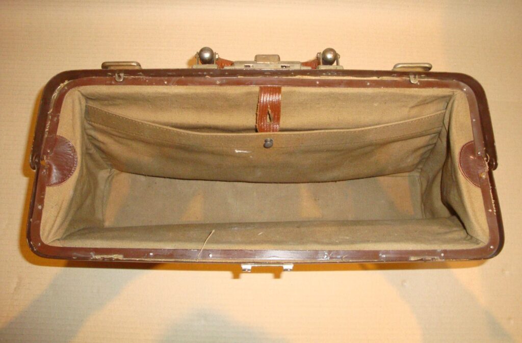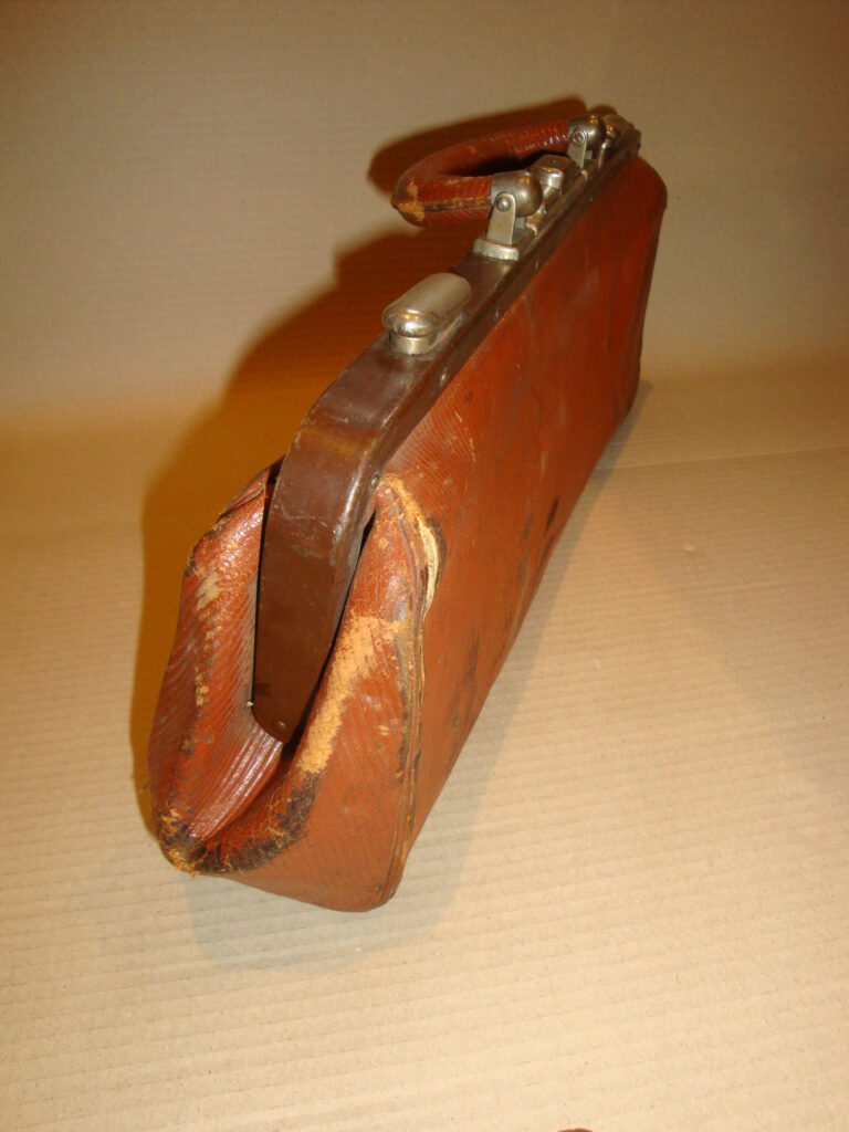 Medical bag: c. 1950-60. Original, as-found condition. Size: 22×49×13 cm.
