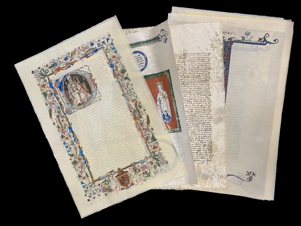 On parchment-style creative paper with Latin text in Gothic script. Fine, high-quality execution.