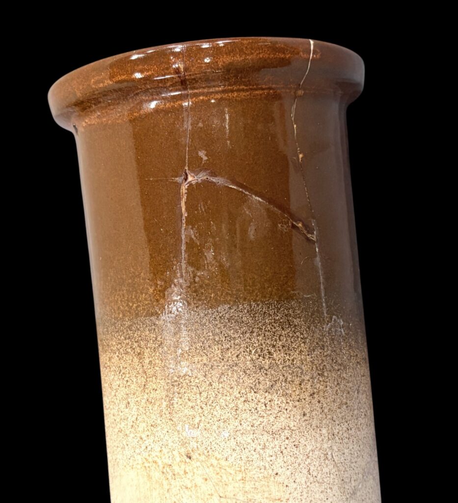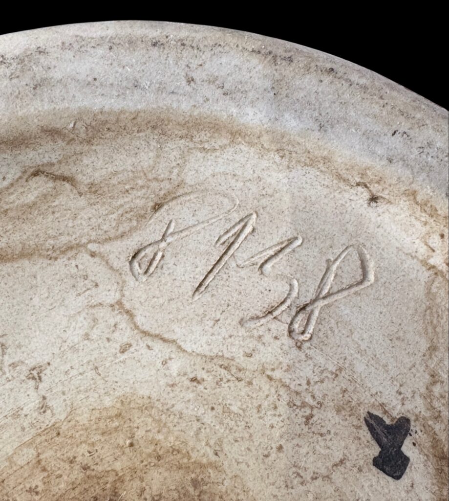 Around 1959. Glazed ceramic with plastic, geometric decoration. In good condition. Signs of earlier repair visible on the inner water container. Scratched model number 8138 and period mark on the base.