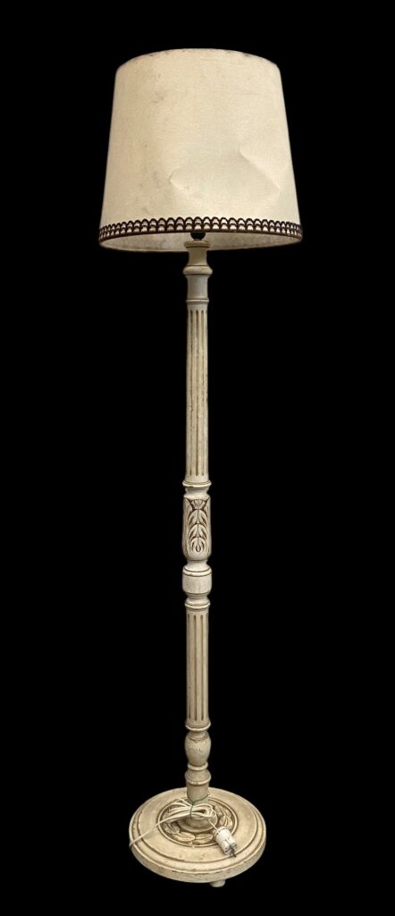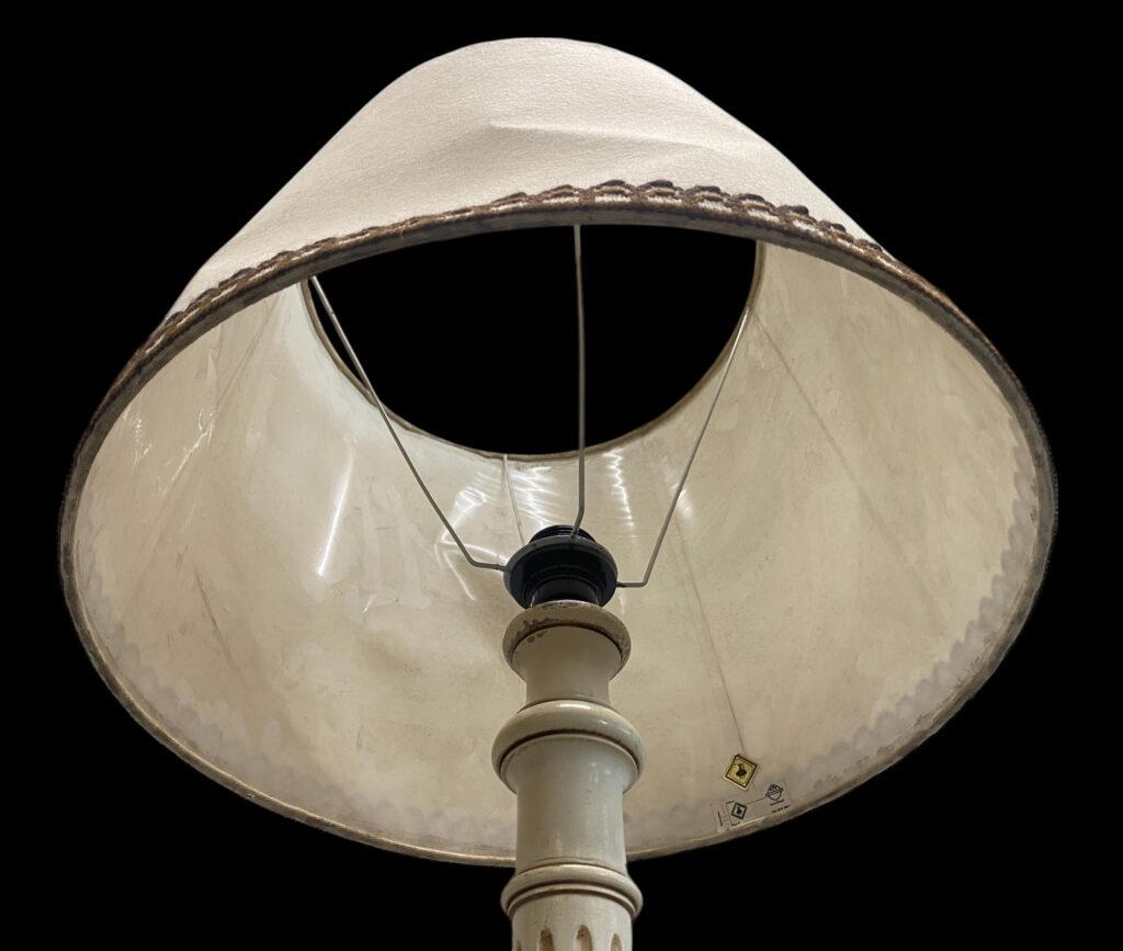 Standing lamp in beige color: mid 20th c. Original, working condition. Size: 185 cm, d: 45 cm