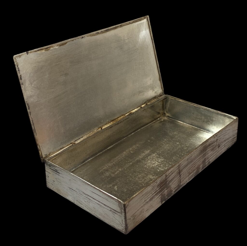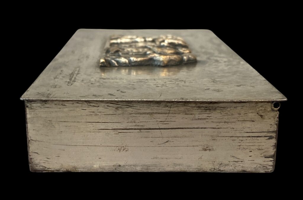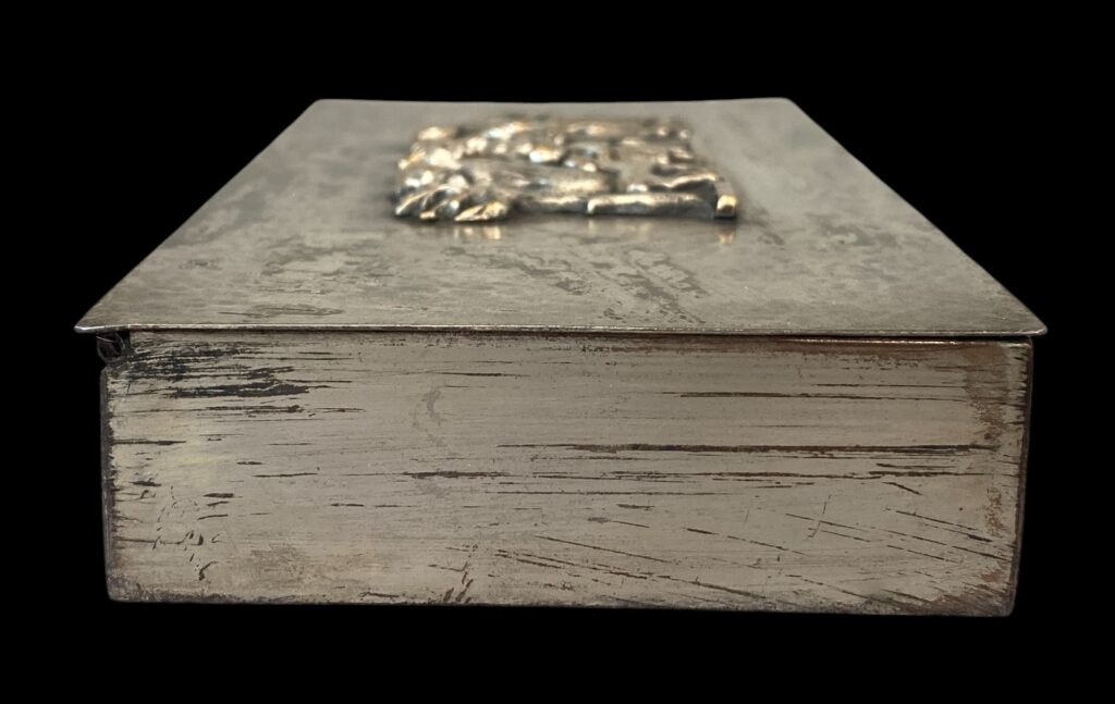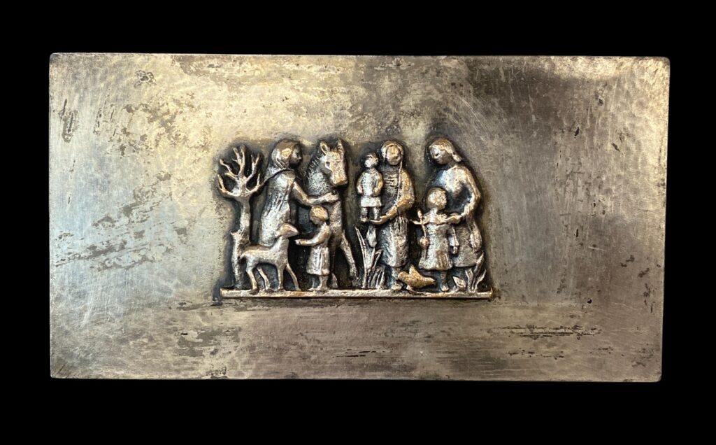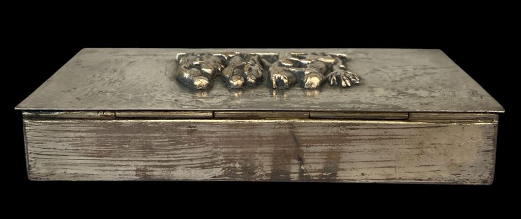 1901 Békéscsaba – 1978 Budapest. Around mid-20th century. Brass, worn silver-plated surface, with cast bronze figurines. Marked “Tevan” on the bottom. In original, cleaned condition.