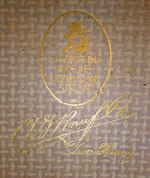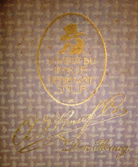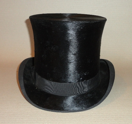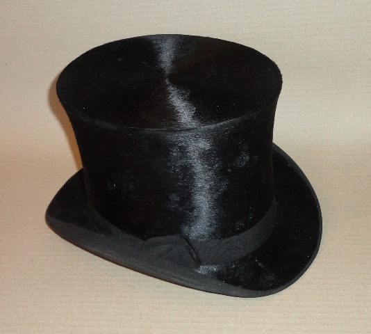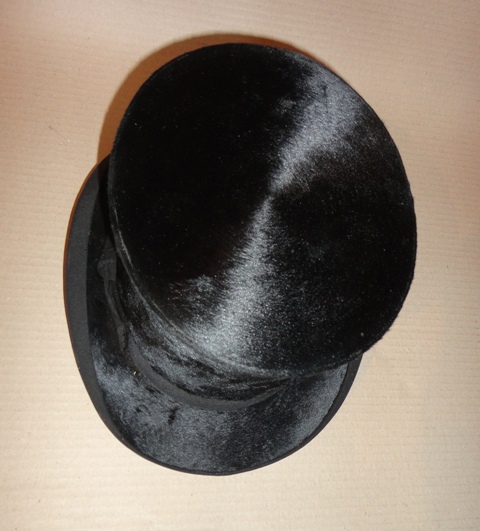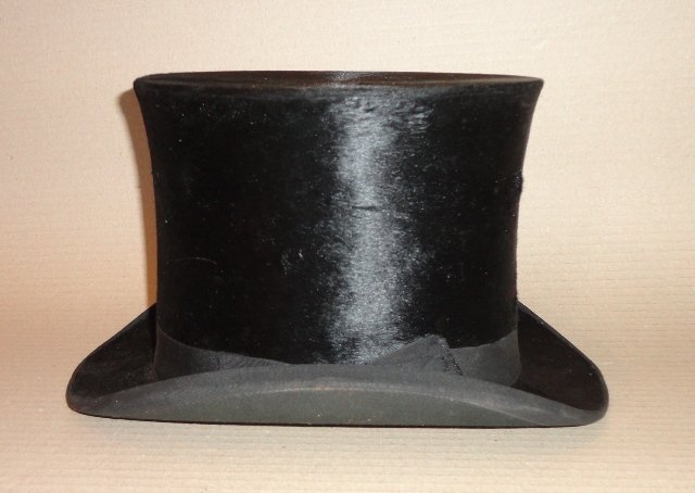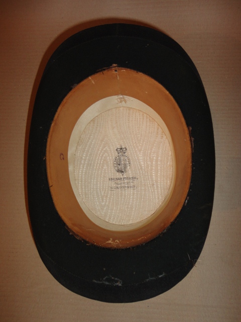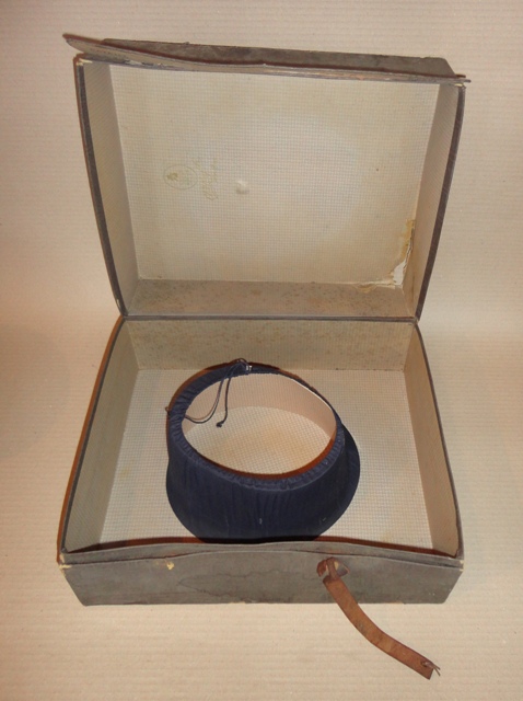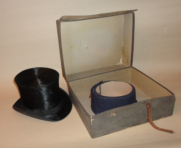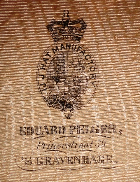 Top hat: c. 1900. Box marked: U VINDT BU KNUF DE NIEUWSTE SNUF, DEN HAAG. Hat marked: EDUARD PELGER. Size: hat15×23×30 cm, box 18×29×35 cm