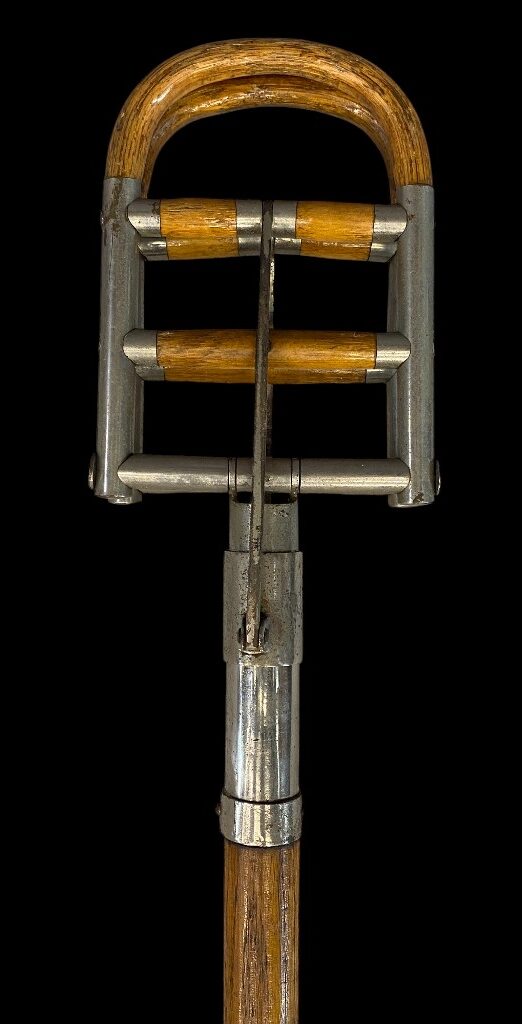 Circa 1920. Oak, polished. Nickel-plated metal parts. In good condition, with minor defects.