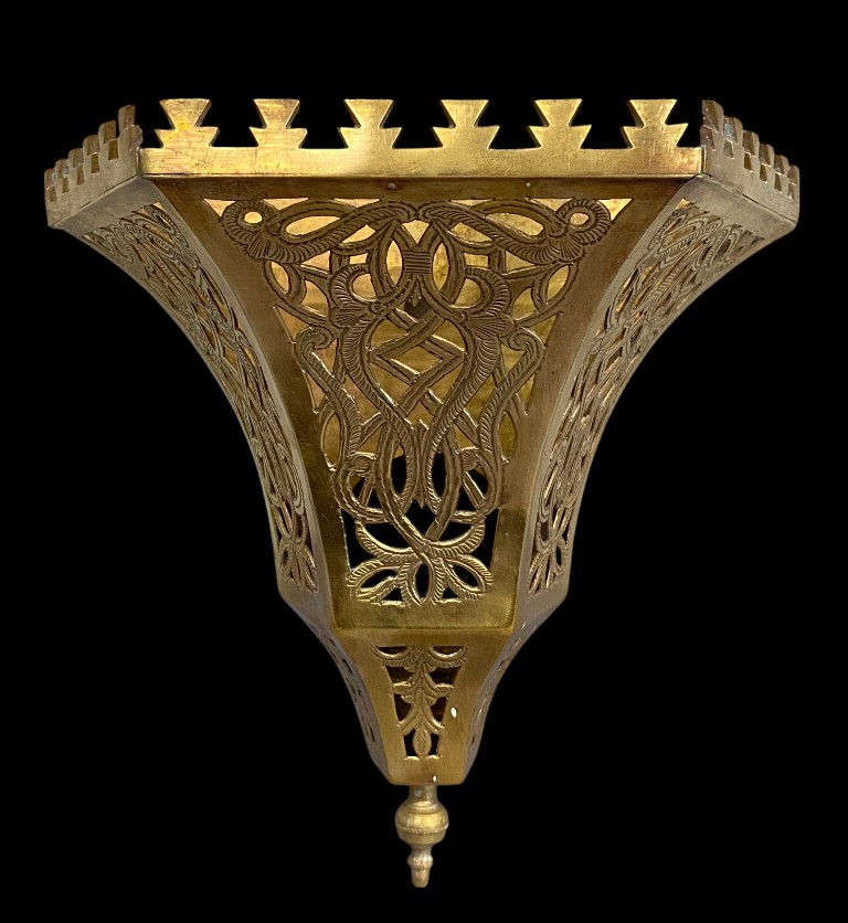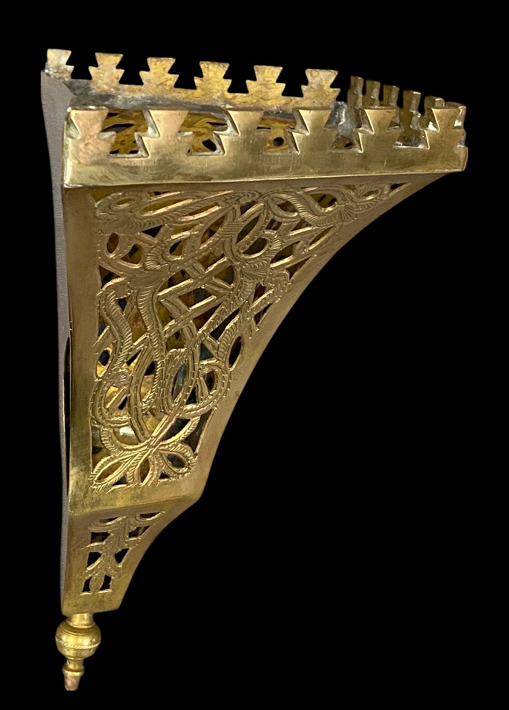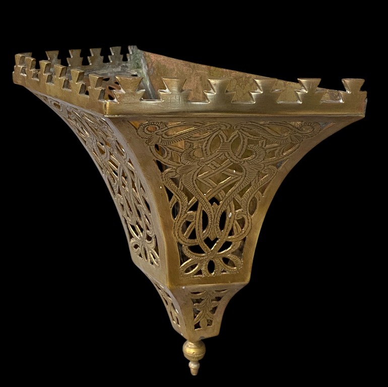 Pierced, engraved copper sheet. In good condition. Various decorations.
