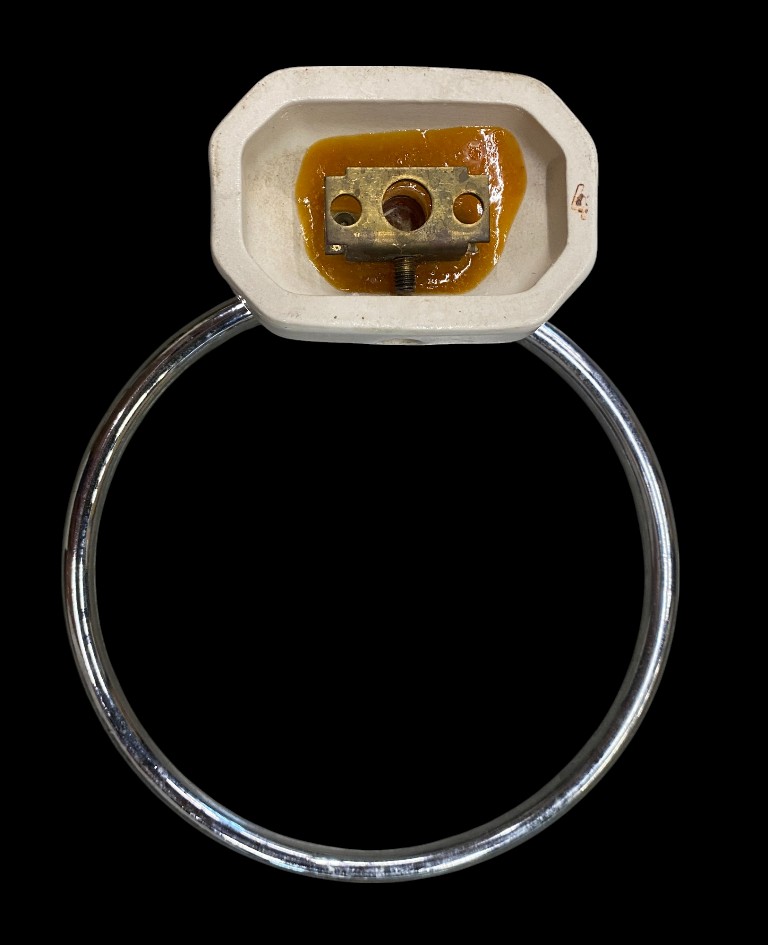 Late 20th century. Glazed faience and chrome rod. In good condition.