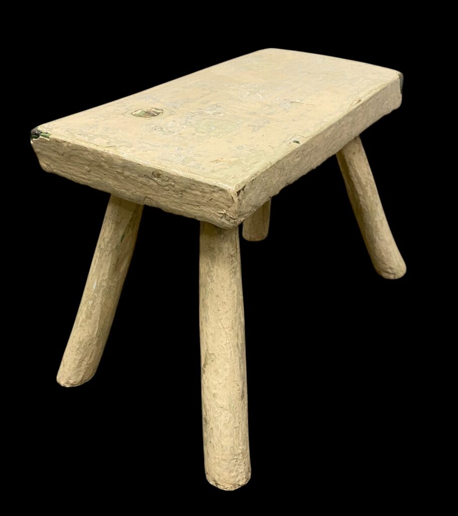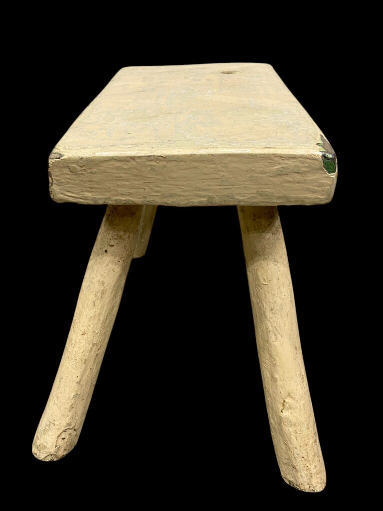 White milking stool: early 20th c. Original, cleaned condition with patina, and with waxolt surface.