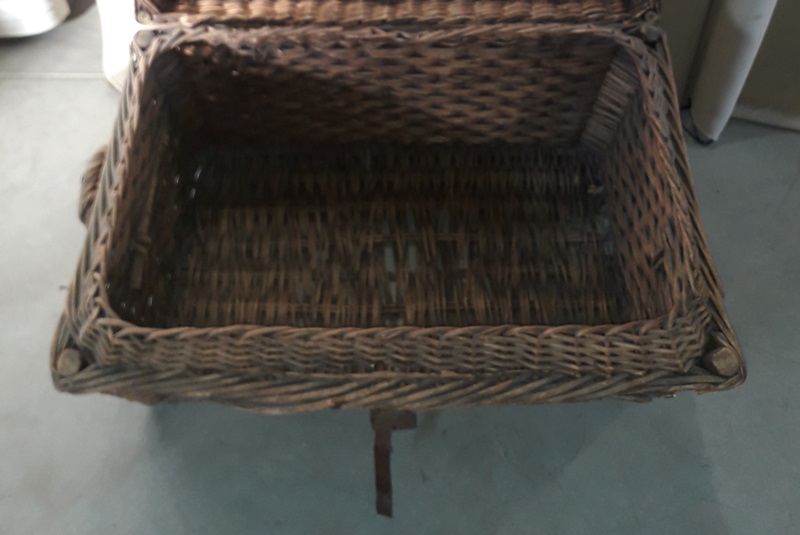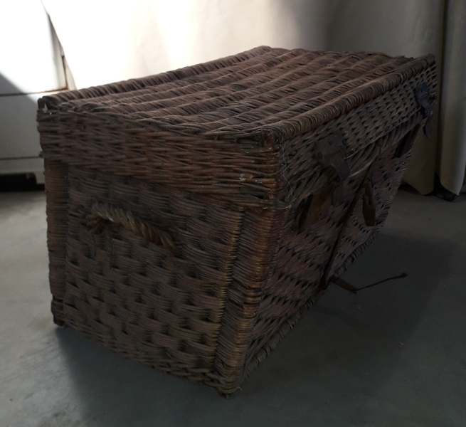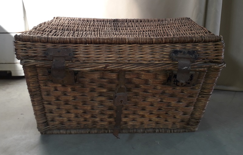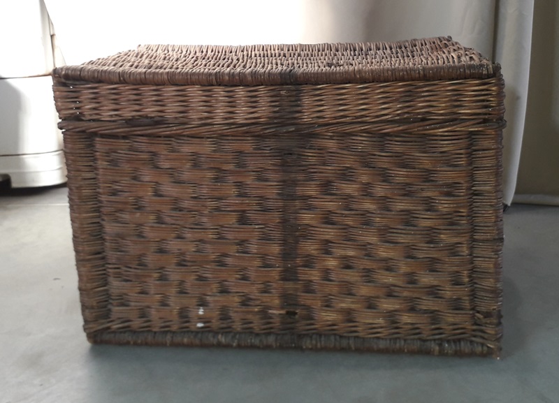 Wicker worked trunk: c. 1920. Nice condition. Size: 43x44x50 cm