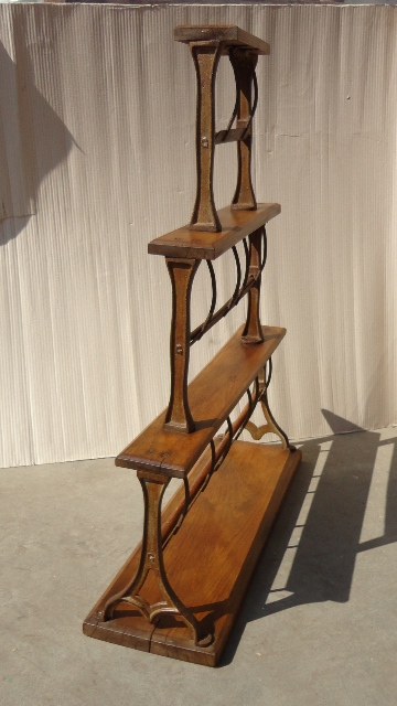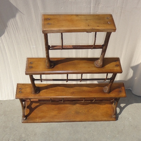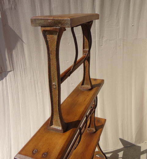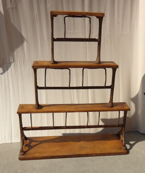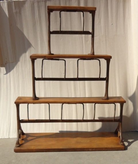 Wrapping stand: c. 1900. On wooden base, with cast iron holders. Original, as-found, cleaned, waxed condition.