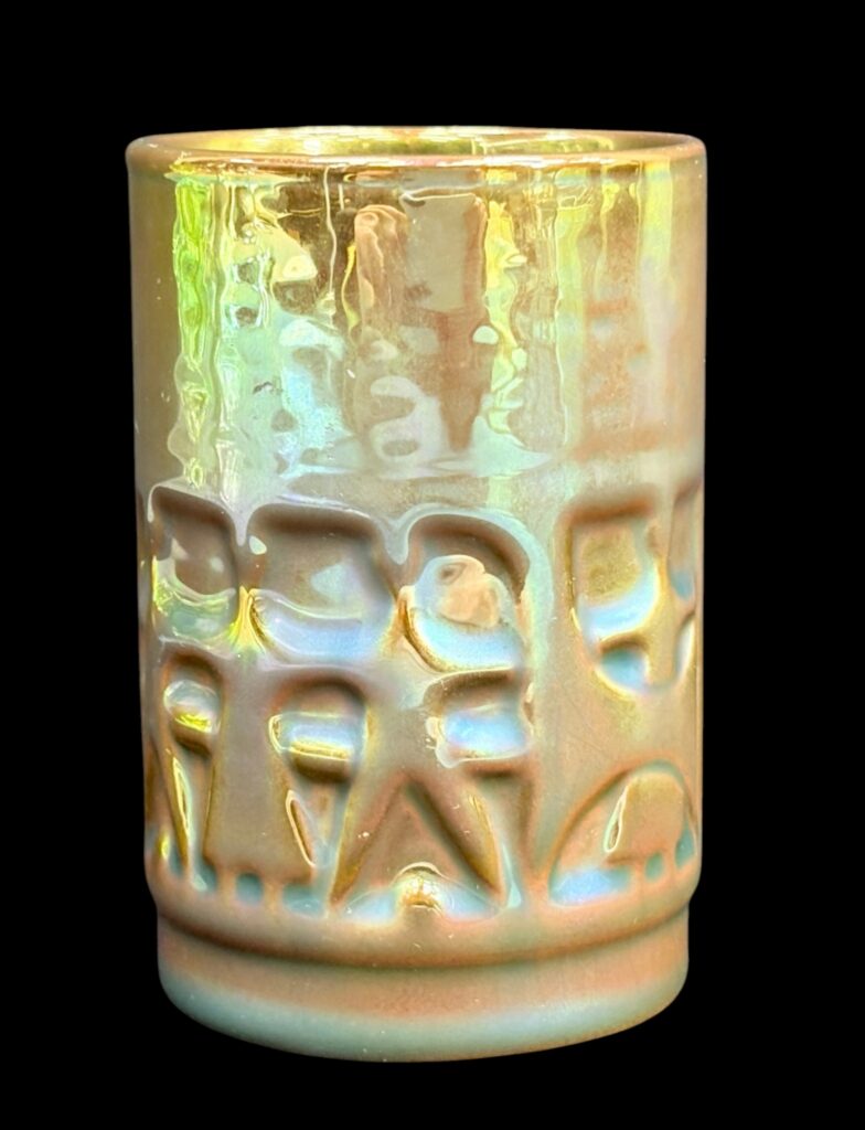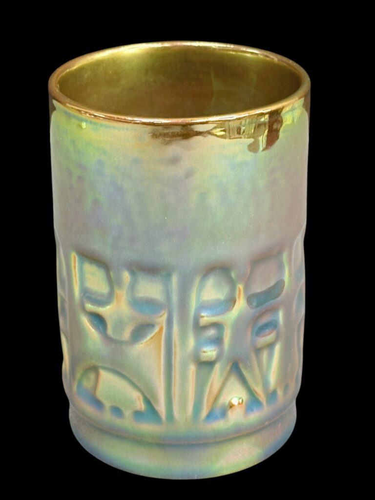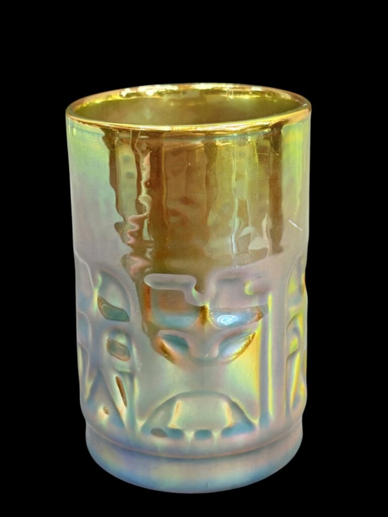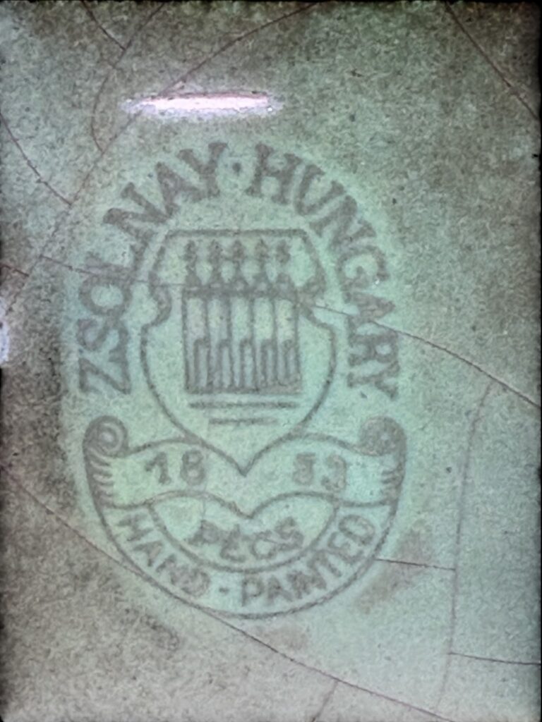 Between 1970–1989. On the base with overglaze gold stamped five-tower mark. Below it the semicircular inscription “PÉCS HANDPAINTED”. Above it “ZSOLNAY HUNGARY”. In good condition with small scratches on the side. Designer: István Kovács.
