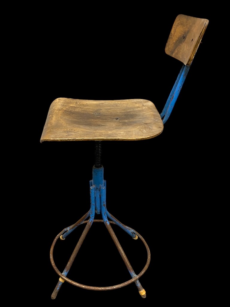 20.sz. második fele. Rétegelt lemez, acél vázon. Patinás, eredeti állapotában.