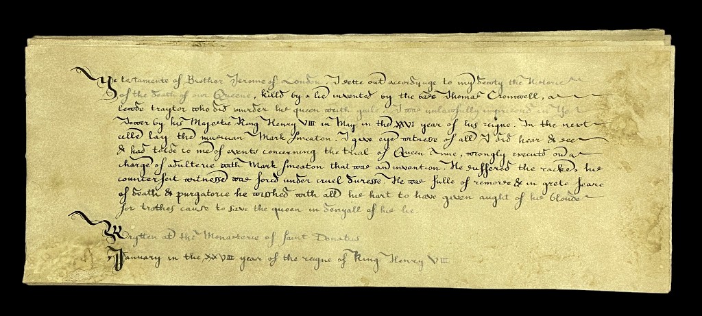 pergamen jellegű öregített kreatív papír, régi kézírásmóddal.