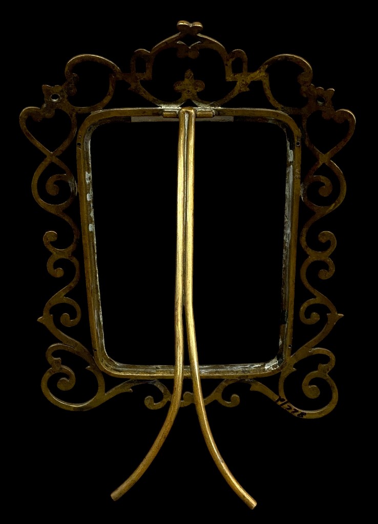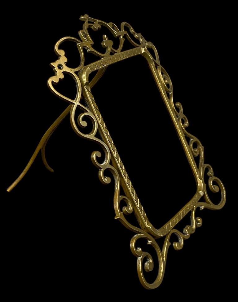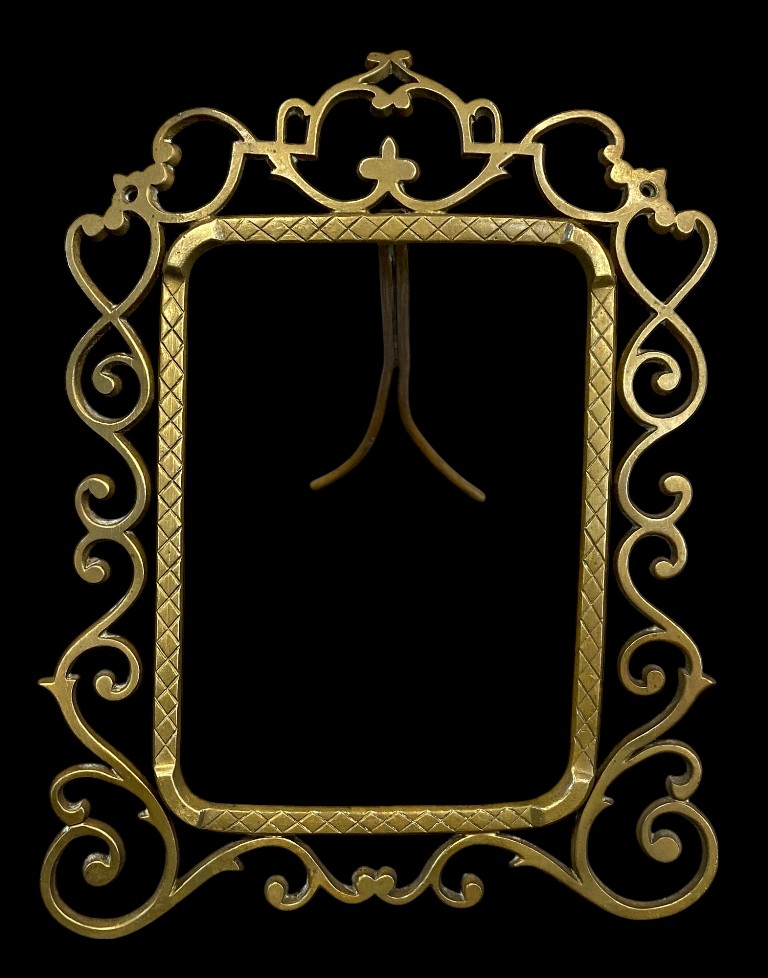 Áttört szélű, rácsos szegélyű asztali képkeret álló 19 x 17 x 20 cm