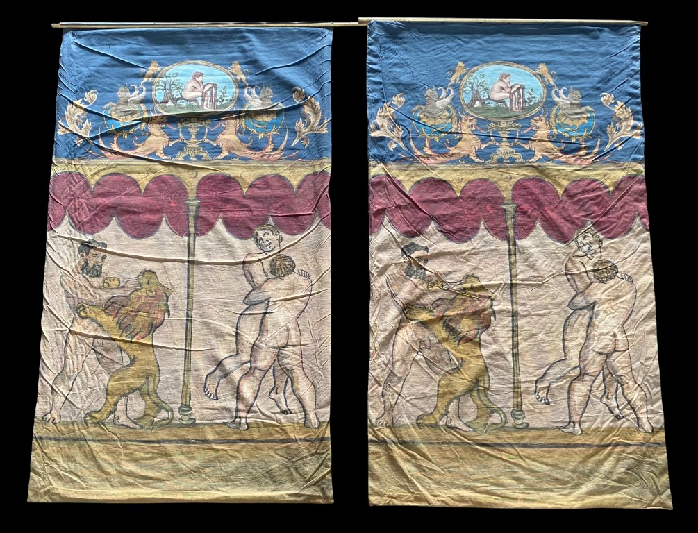 Birkózó/Herkulest ábrázoló 2 oldalas falikárpit 2,4 x 1,4 m