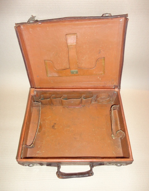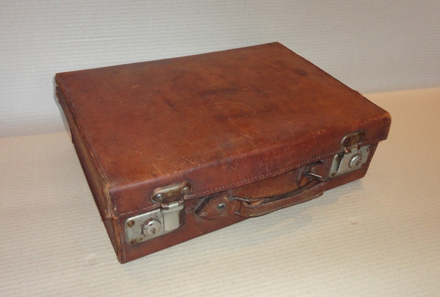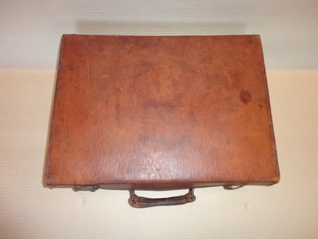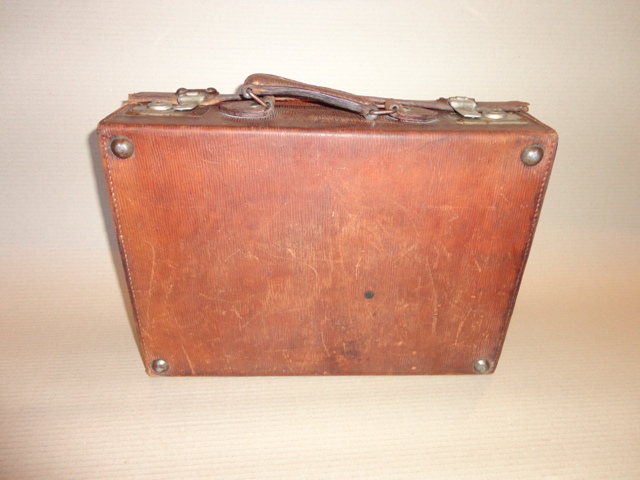 Bőr bőrönd: 1900 körüli. Parfümös kis bőrönd, eredeti, fellelt, tisztított állapotban. Belső üvegek hiányoznak. Méret: 12×40×32 cm