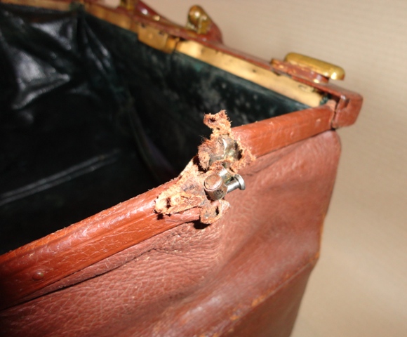 Bőr utazótáska: 1900 körüli. Eredeti, fellelt, tisztított állapotban. Belül jelezve: BEIMEL IGNÁC, BUDAPEST. Méret: 18×39×23 cm