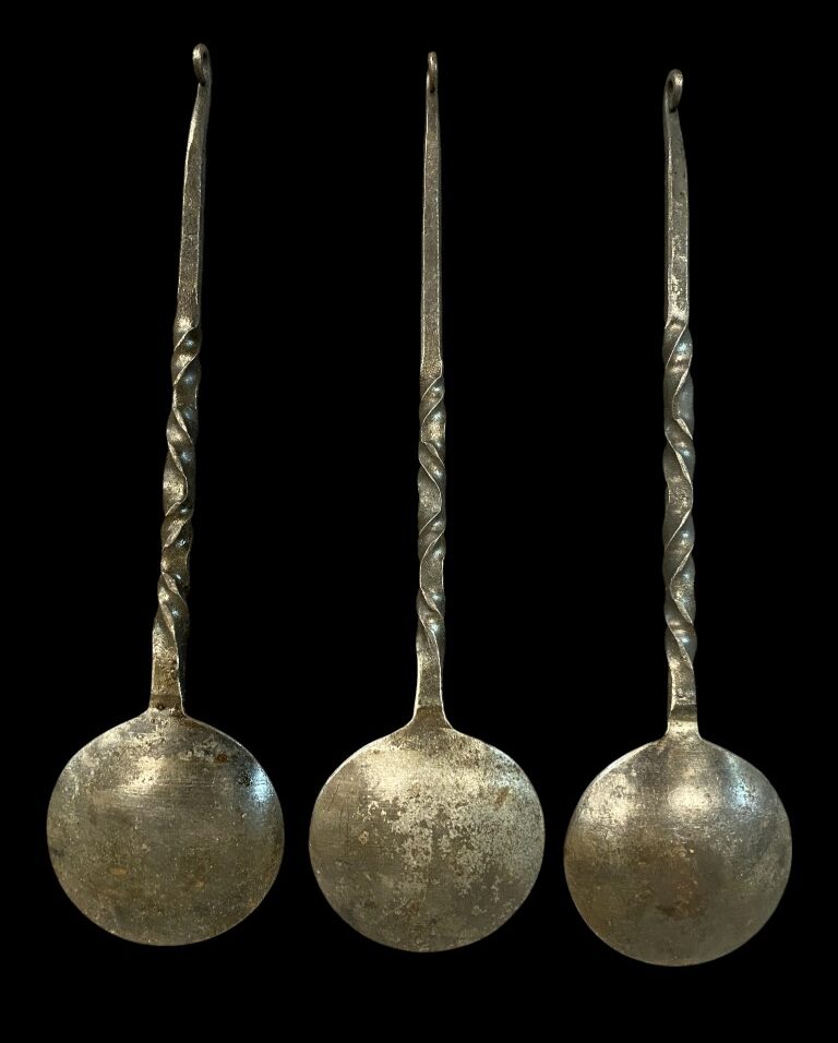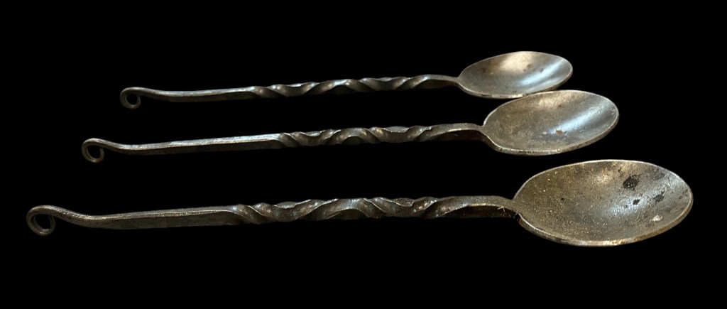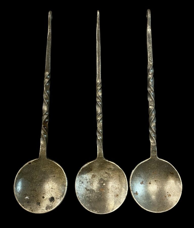 Csavart szárú kunkori végű kör fejű kanál