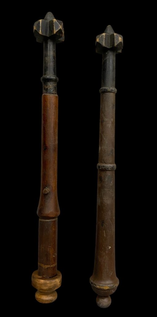 Esztergált fa, öregített festéssel. Jó állapotban.