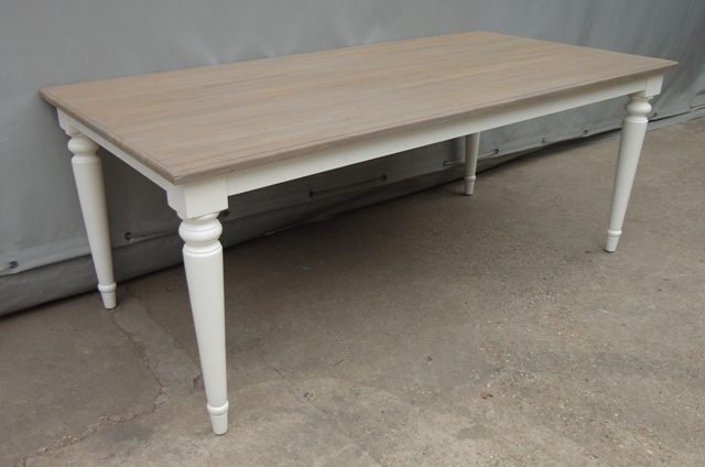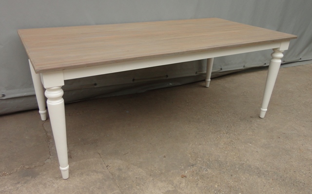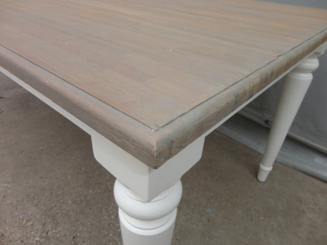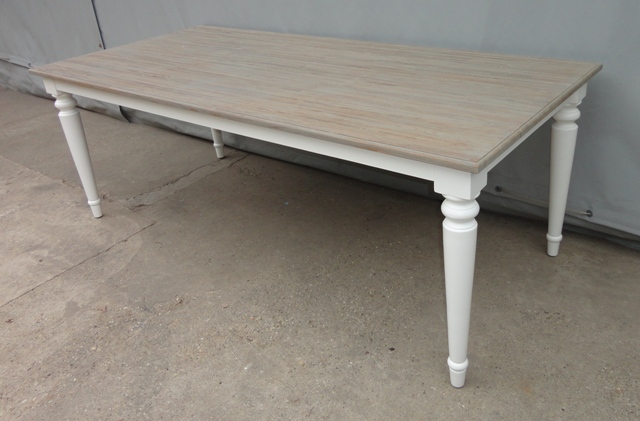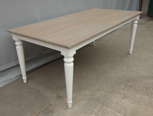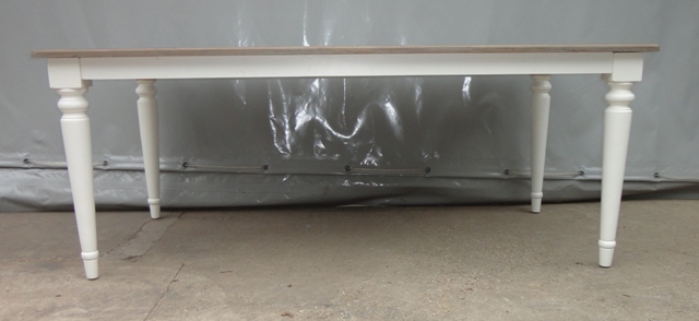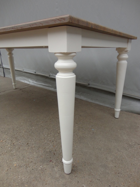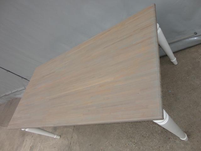 Étkezőasztal 220-as téglalap alakú lappal: Új készítésű! Festett bázissal, esztergált lábbal. Szürkés színű teakfa lappal.