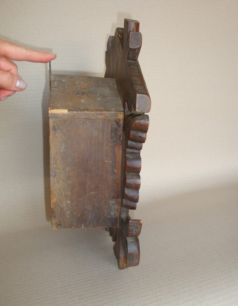 Faragott vekkertartó: 1940 körüli vekkertartó faragott díszítéssel, eredeti, letisztított, vaxolt állapotban.