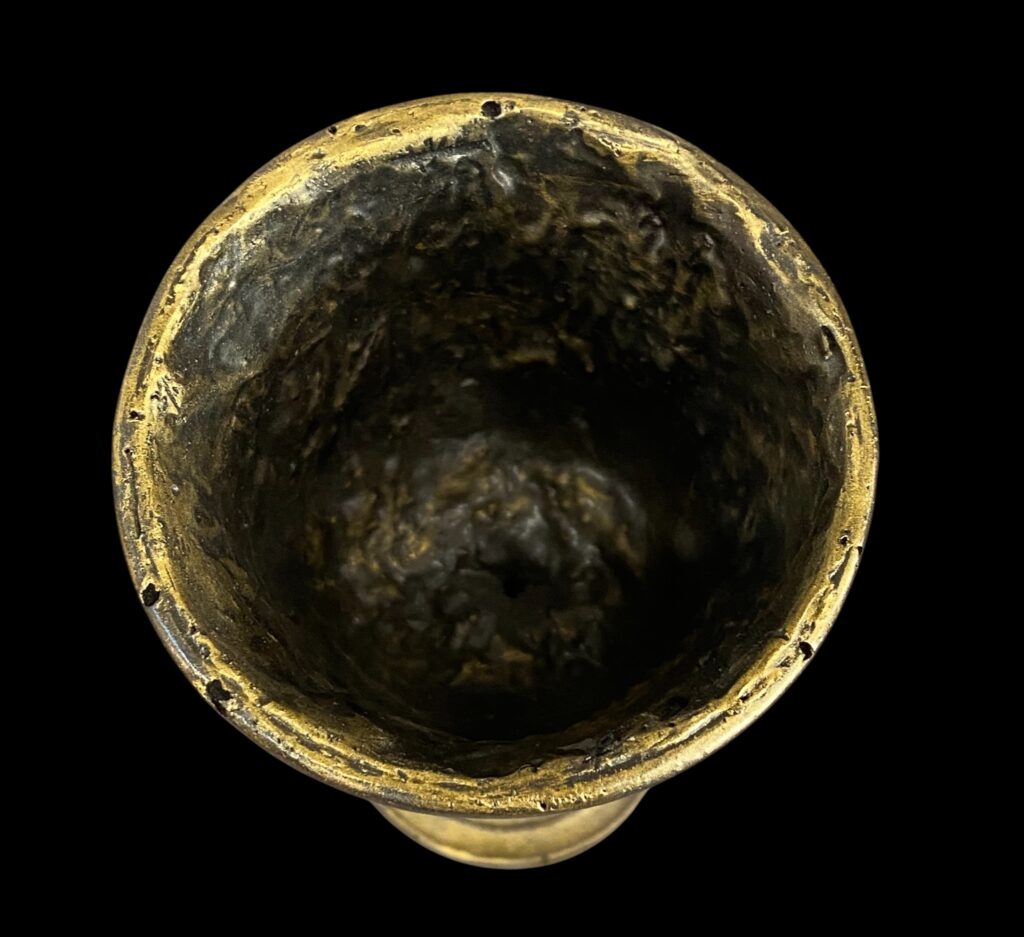 Öntött gumi, kívül fémhatású, belül arany festéssel.