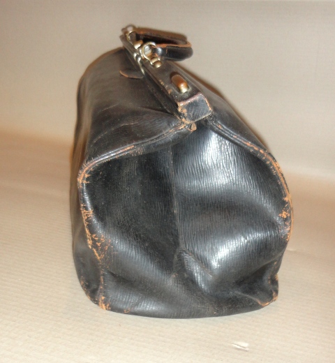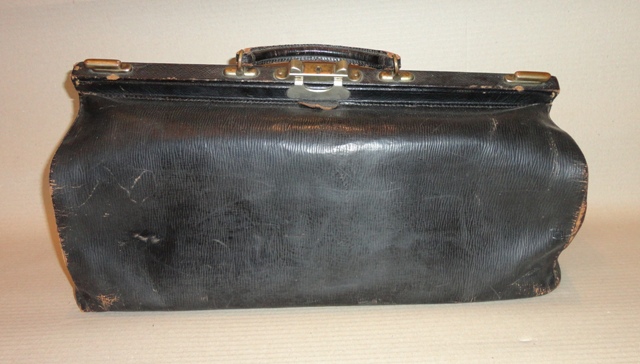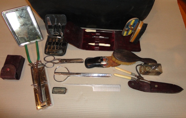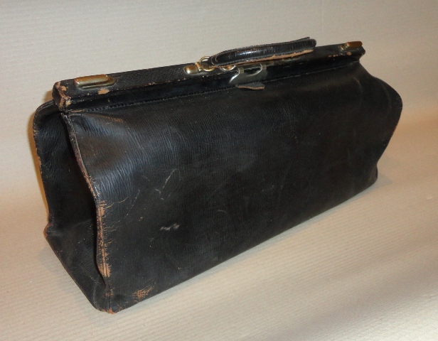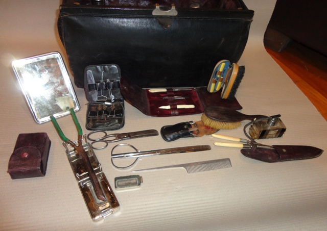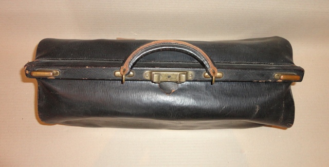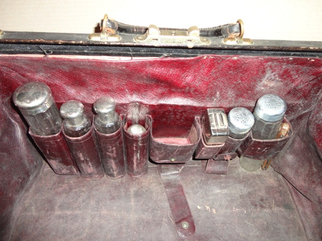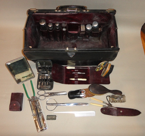 Fodrász/borbély táska: 1900 körüli. Fekete bőr. Komplett belső felszerelésével.
