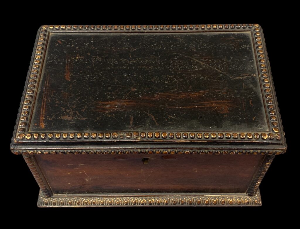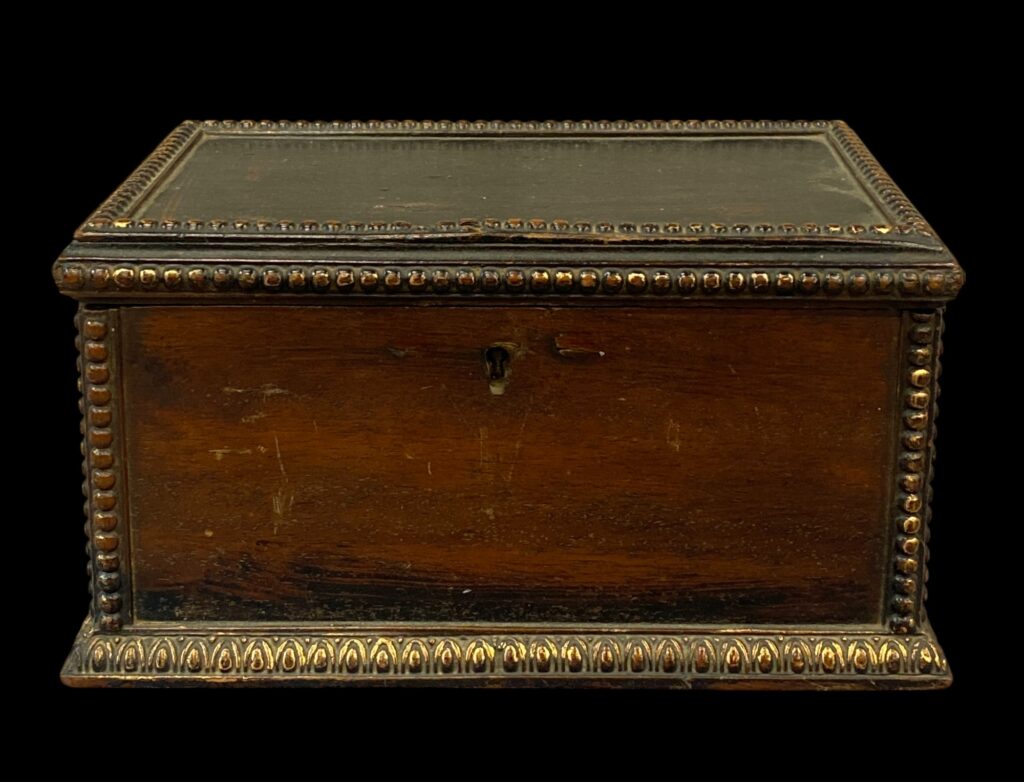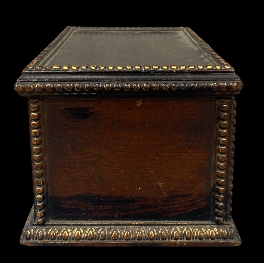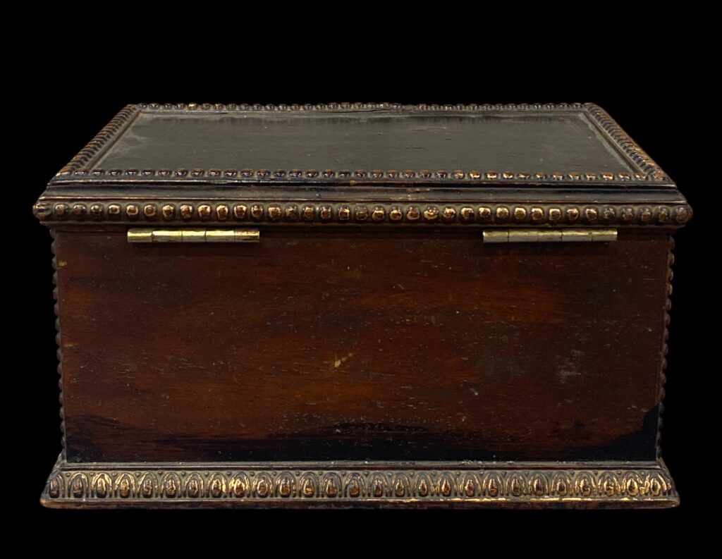 Egyenes tetejű réz pántos szegecselt magasabb bőrözött láda