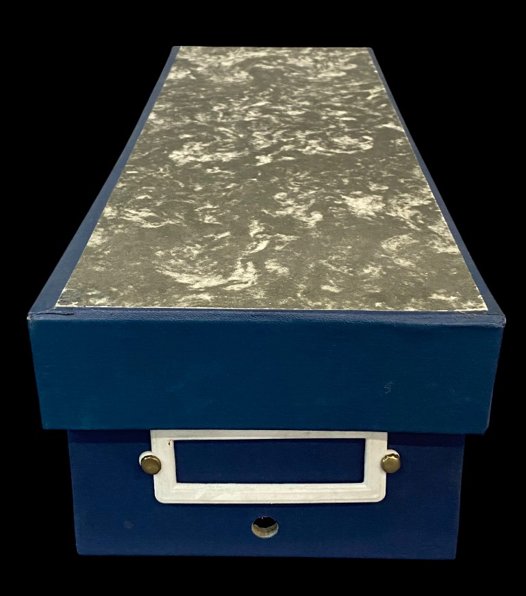 Kék/szürke márványos irattároló doboz fedéllel, 48 cm