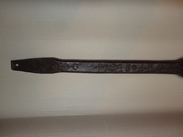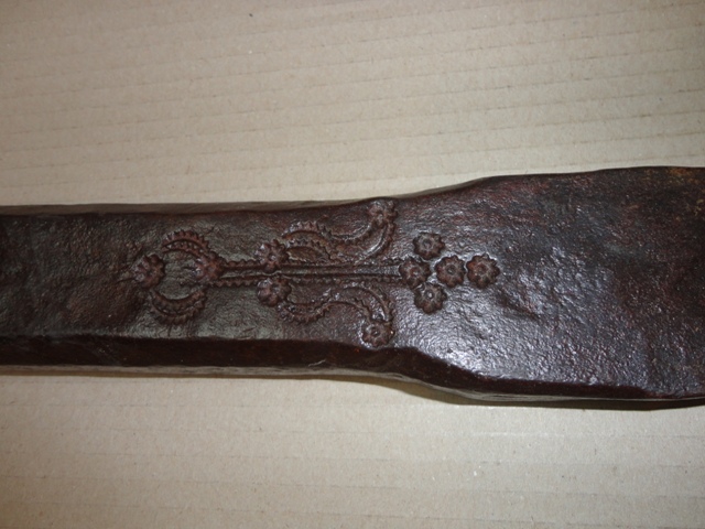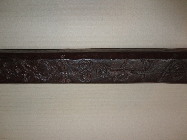 Kerékagy fúró: Szekérkerék tengelyének lyuk kimarója. Nagyon szép díszítéssel, datálással. Tökéletes állapotban.