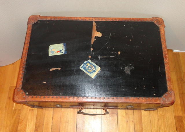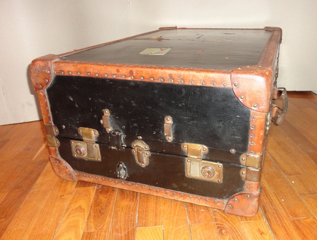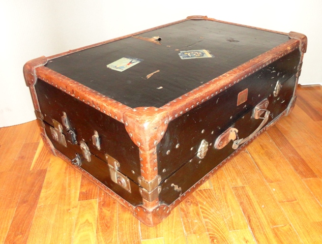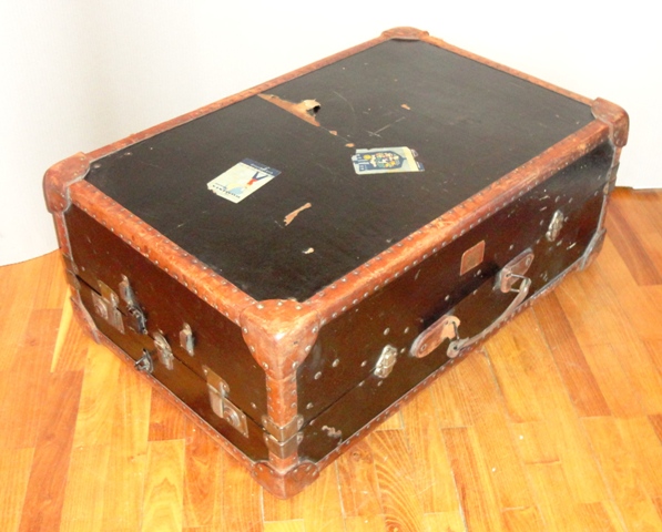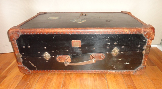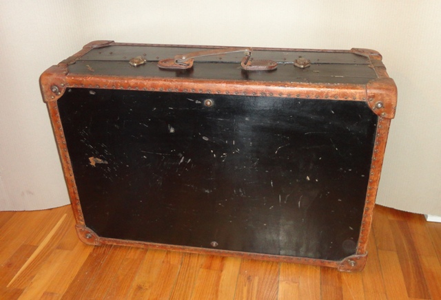 Koffer: 1900 körüli. Szétnyitható, nagyméretű, vállfás kivitelben, osztott belsővel. Méret: 30×77×53 cm