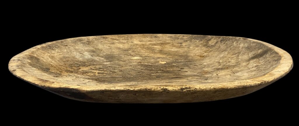 Lapos ovális vájatú fatál: Vájt nyírfa. Patinás, de tisztított, jó állapotában.