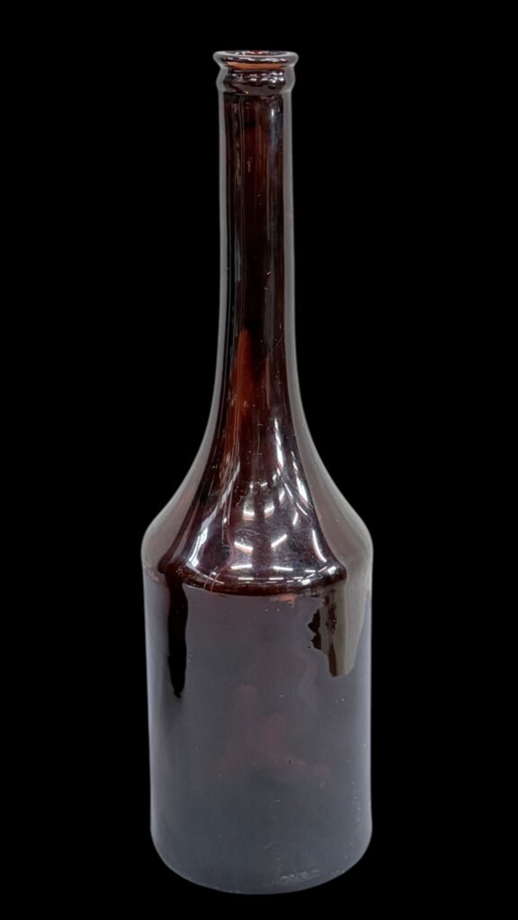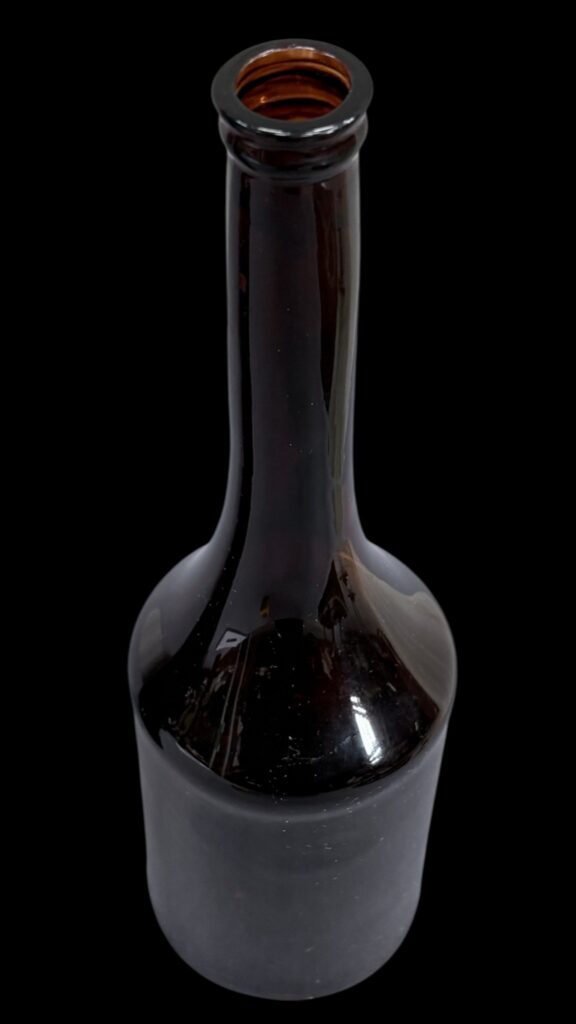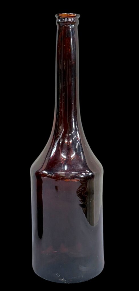 Magas nyakú, borostyán színű borosüveg