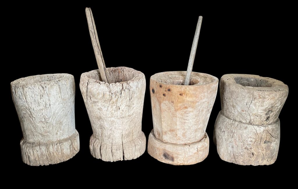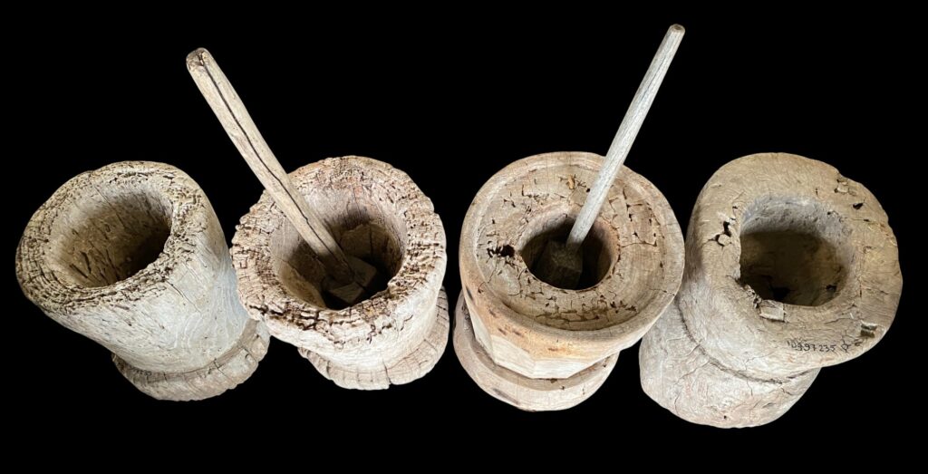 Talapzatos rönk mozsár törővel: 19.sz. vége. Patinás jó állapotban. Méret: 47 cm rúd nélkül, d=34 cm