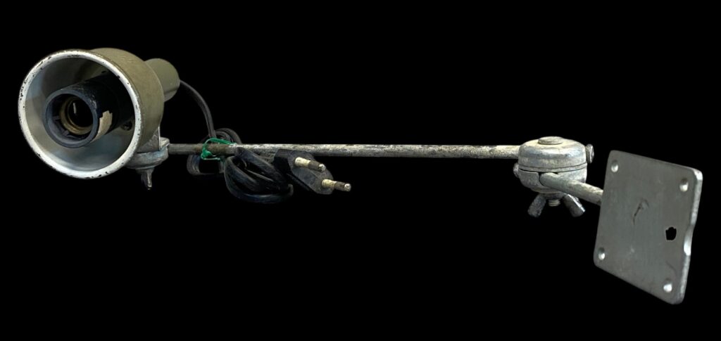 20. sz. közepe körül. Alumínium és acél. Életszerű, jó állapotban. – Asztal élére szerelhető.