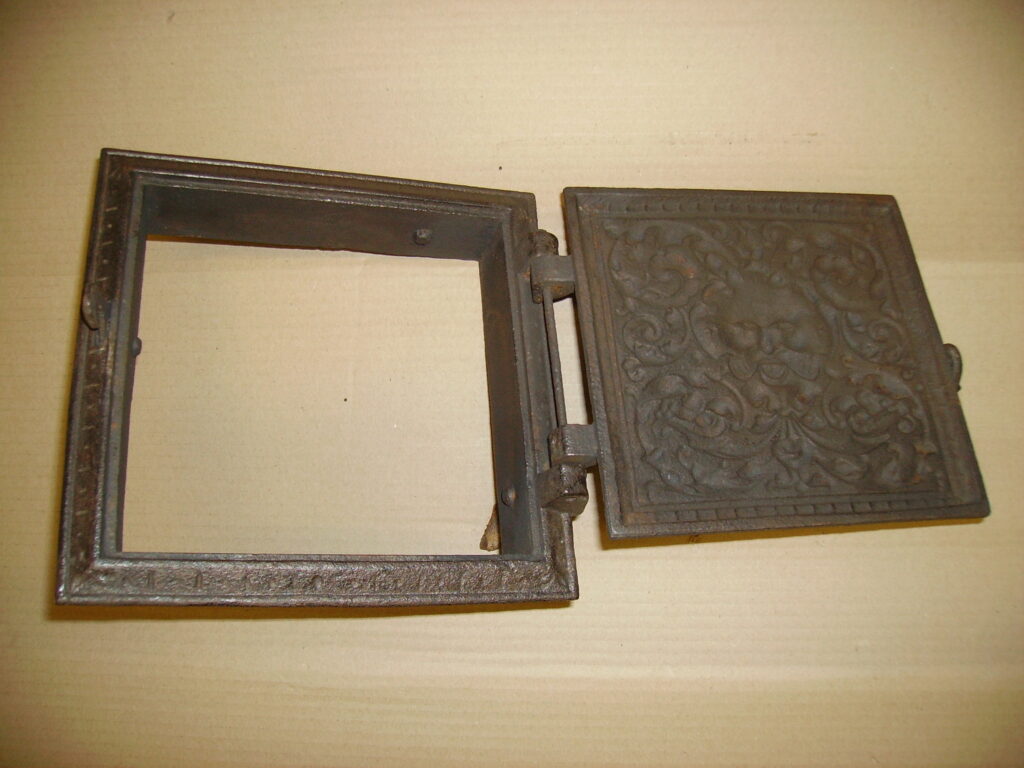 Öntöttvas díszes cserépkályhaajtó: öntöttvas anyagú, letisztított, drótkorongozott, vasporozott, azonnal használható állapotban.