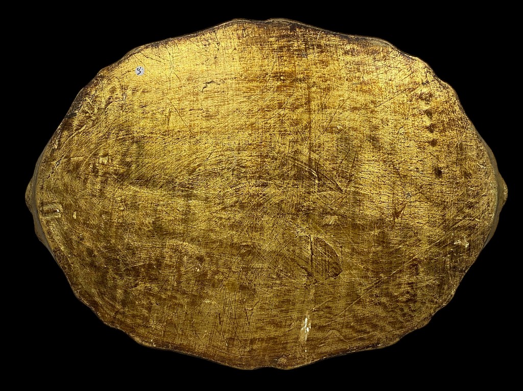 Vésett fa, arany és narancsszínű, barnás festéssel. Jó állapotban.