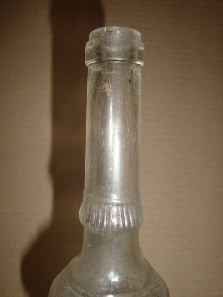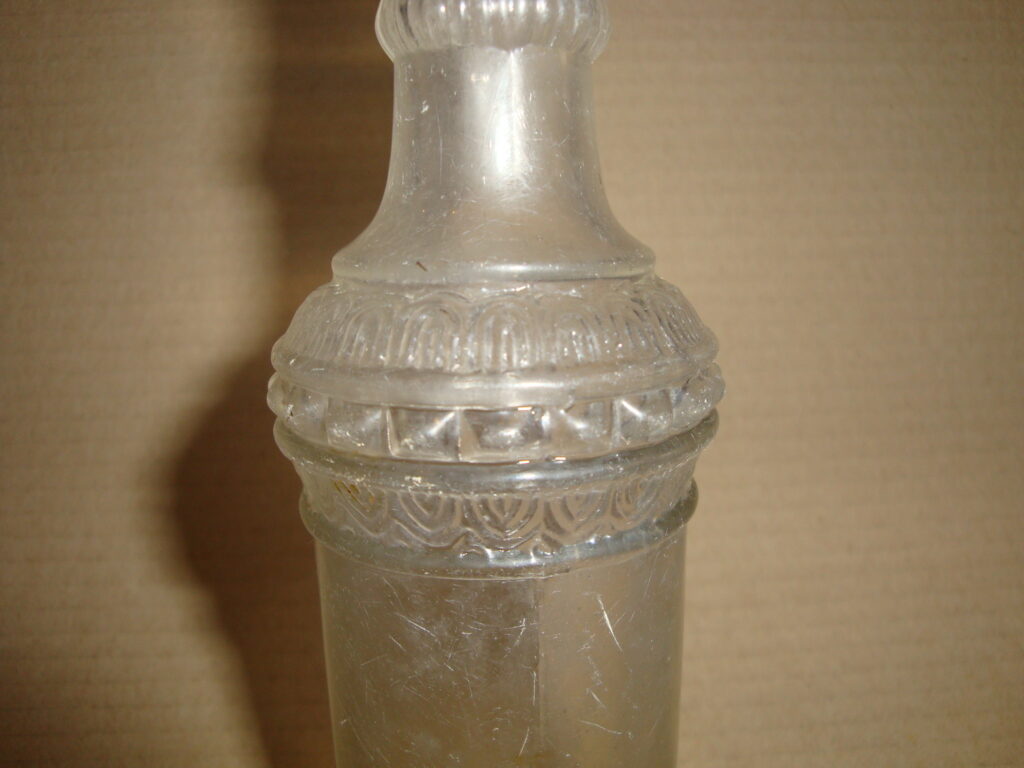 Pásztorüveg mintájú palack: 20. sz. eleje. Formába öntött, vékony falú, mintás üveg. Szép, eredeti állapotában.