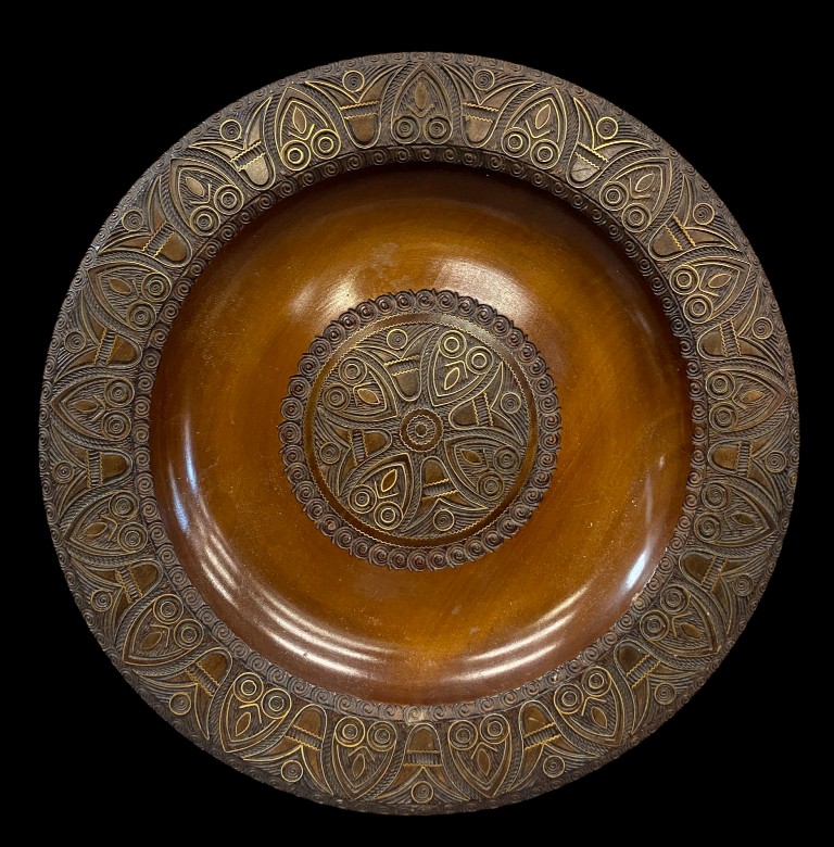 Faragott díszítésű, esztergált fa. Jó állapotban.