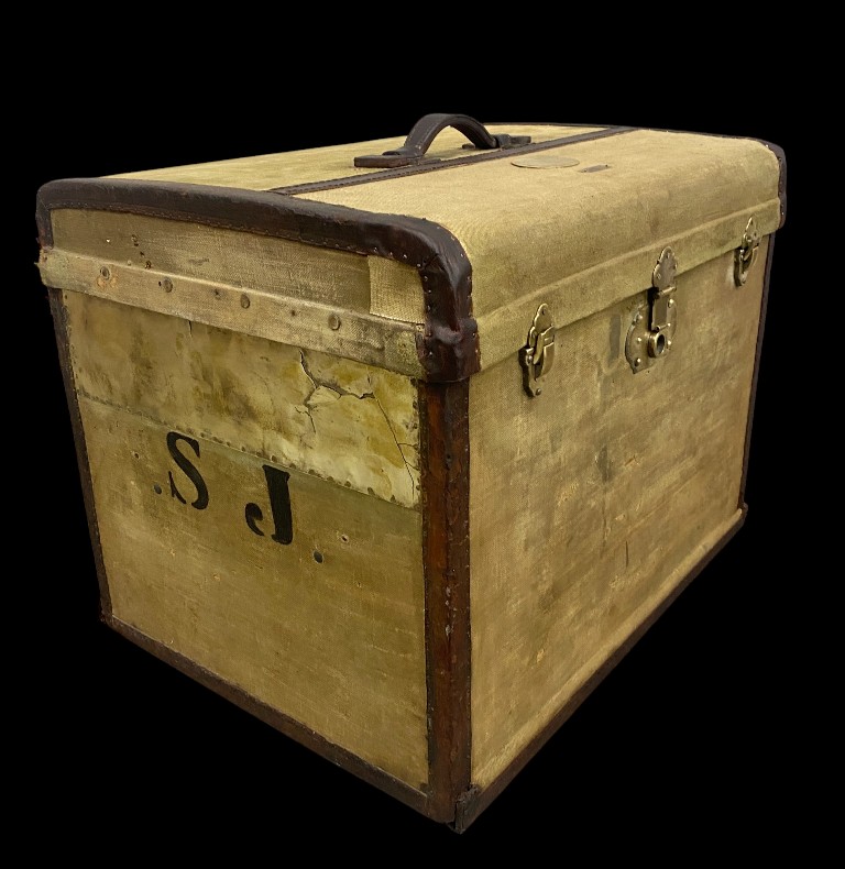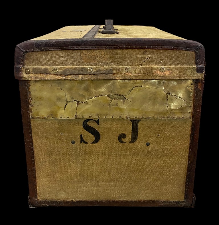 S.J. monogramos réz csatos utazóláda