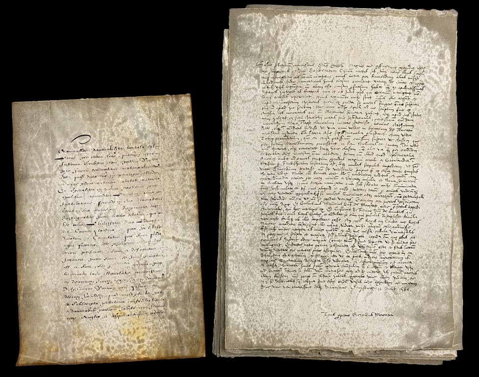 Szürke, pergamen jellegű öregített kreatív papír, régi kézírásmóddal.