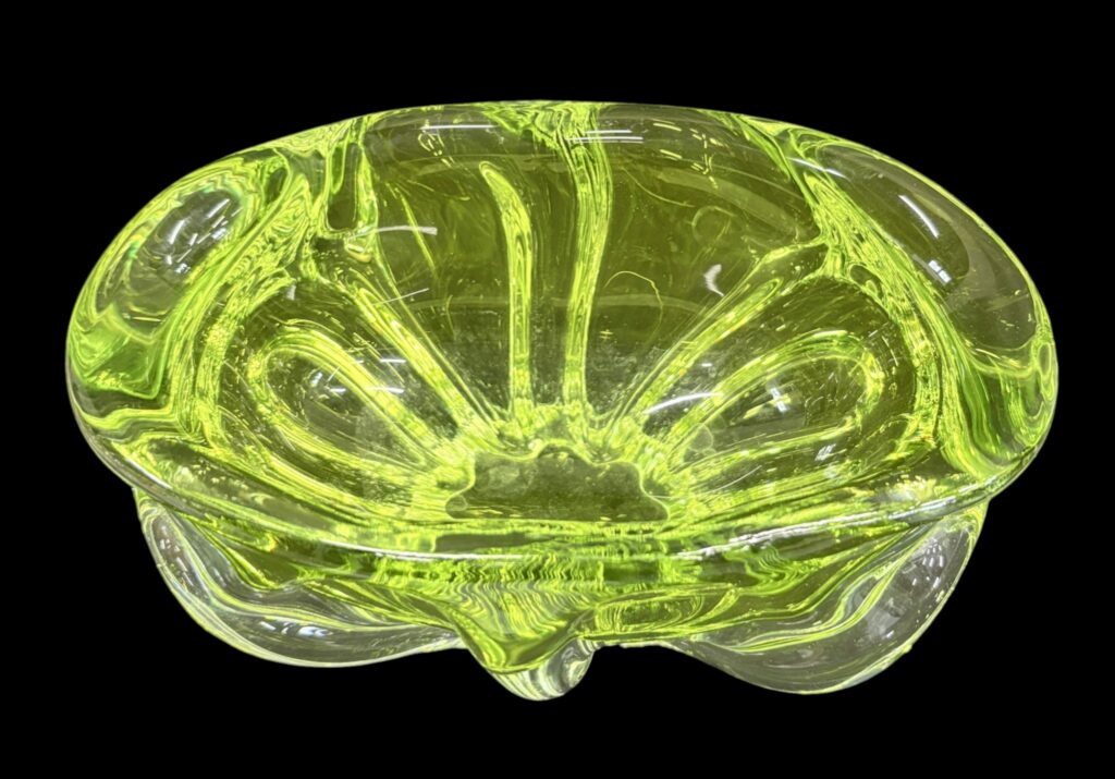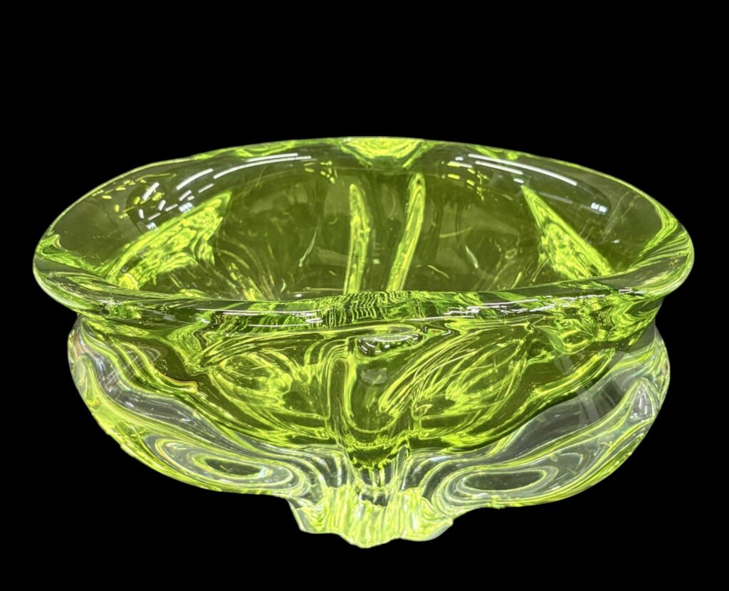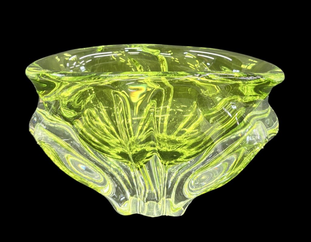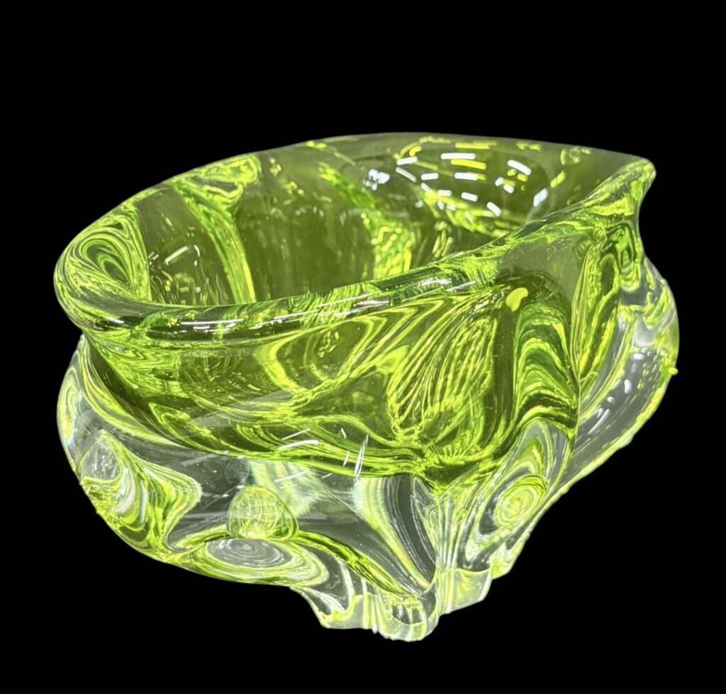 Színtelen–uránsárga üveg kínáló