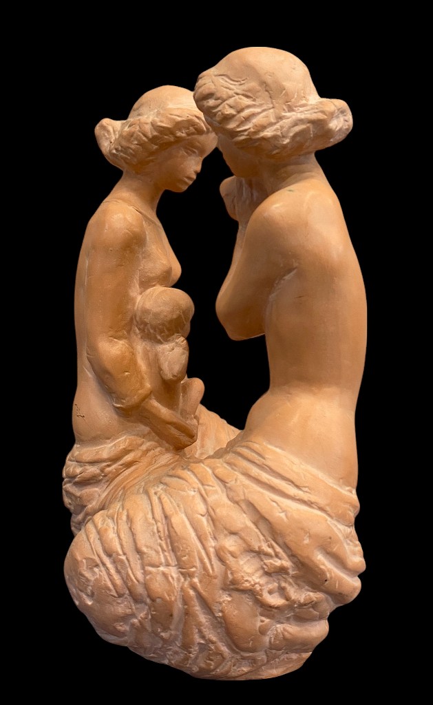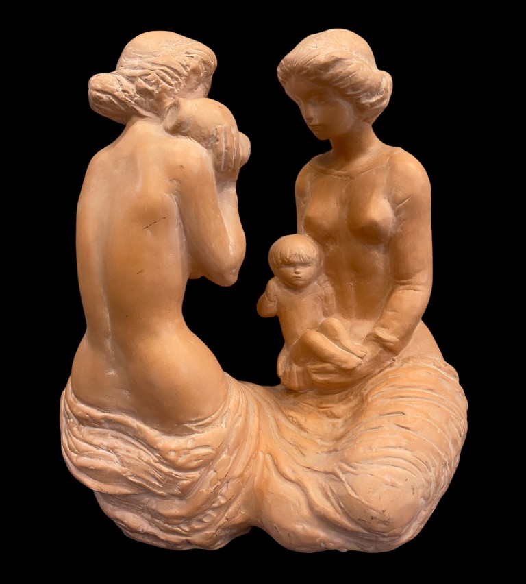 Térdeplő hölgyek, szobor gyermekkel