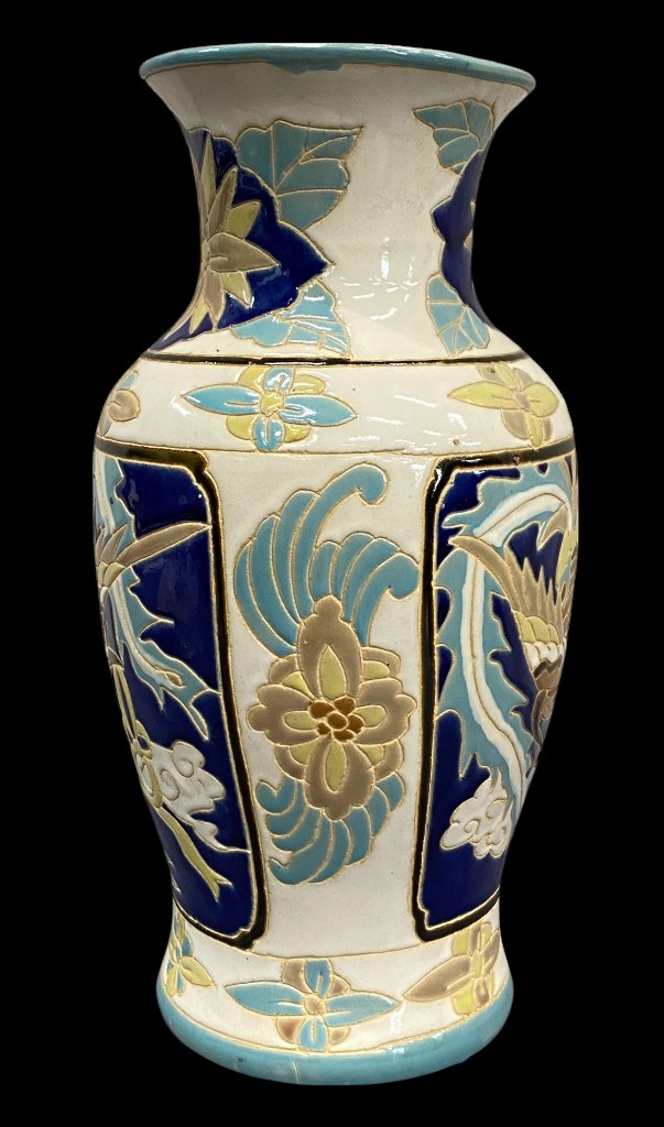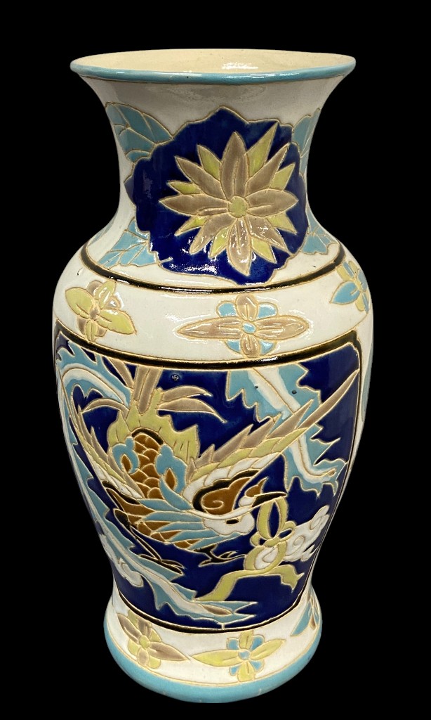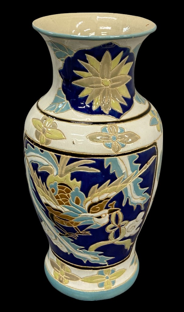 Tört fehér alapon madaras festésű keleti jellegű váza 38 cm