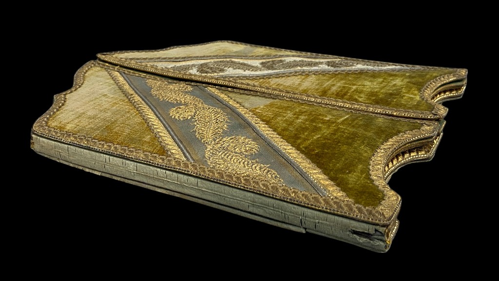1900 körüli. Bársonyborítással, aranyozott szegőkkel. Belsejében 4 db rézkeretes fényképtartóval. Jó állapotban.