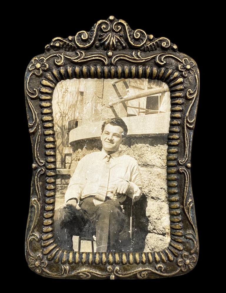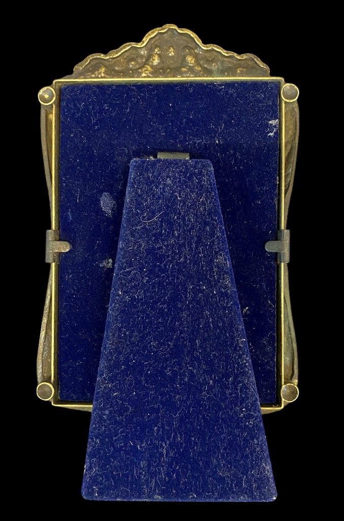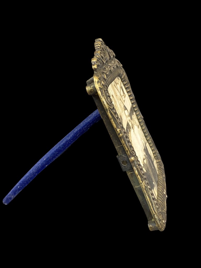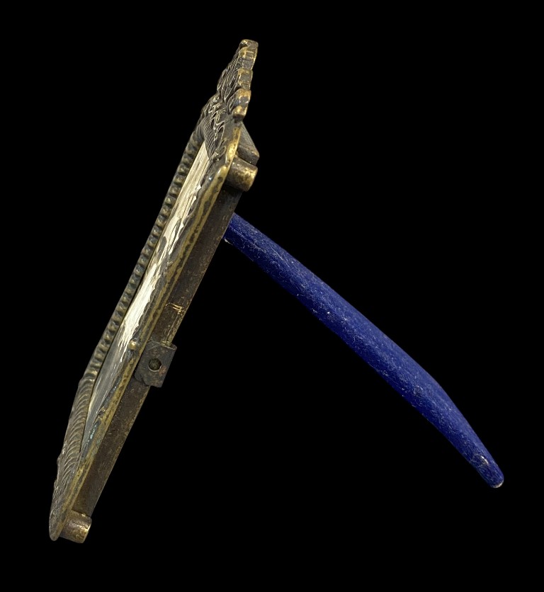 Virágos szélű, bordás szegélyű asztali képkeret álló 12 x 8,5 x 12 cm