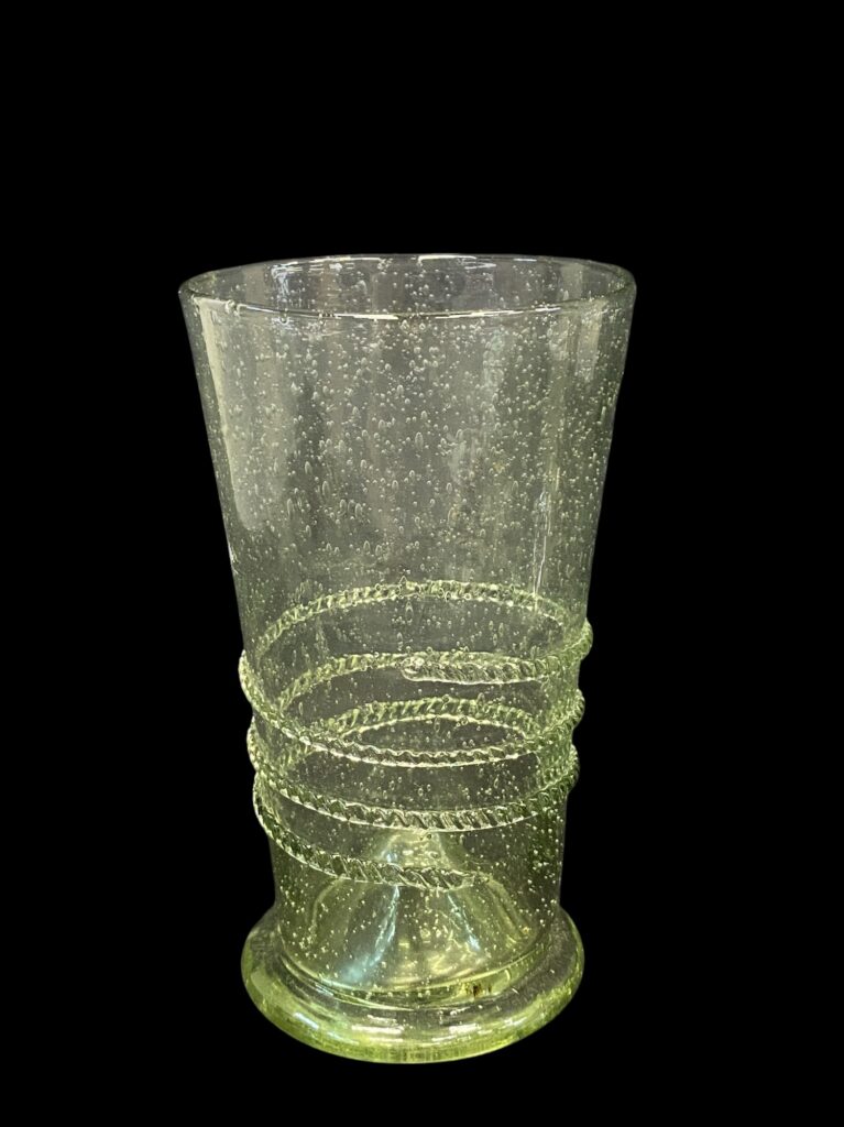 20. sz. vége. Fújt, zárványos üveg, körben rátét díszítéssel. Jó állapotban.